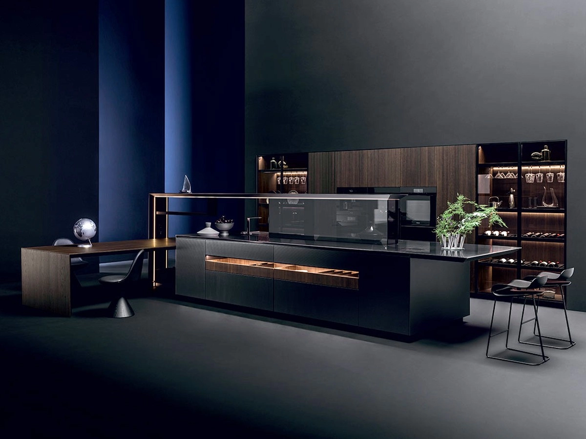 Arrital's Nautila kitchen goes beyond the idea of a kitchen environment: a new system that transforms the concept of the kitchen into a multi-tasking architecture and acts as a separating architrave between the living and dining areas.