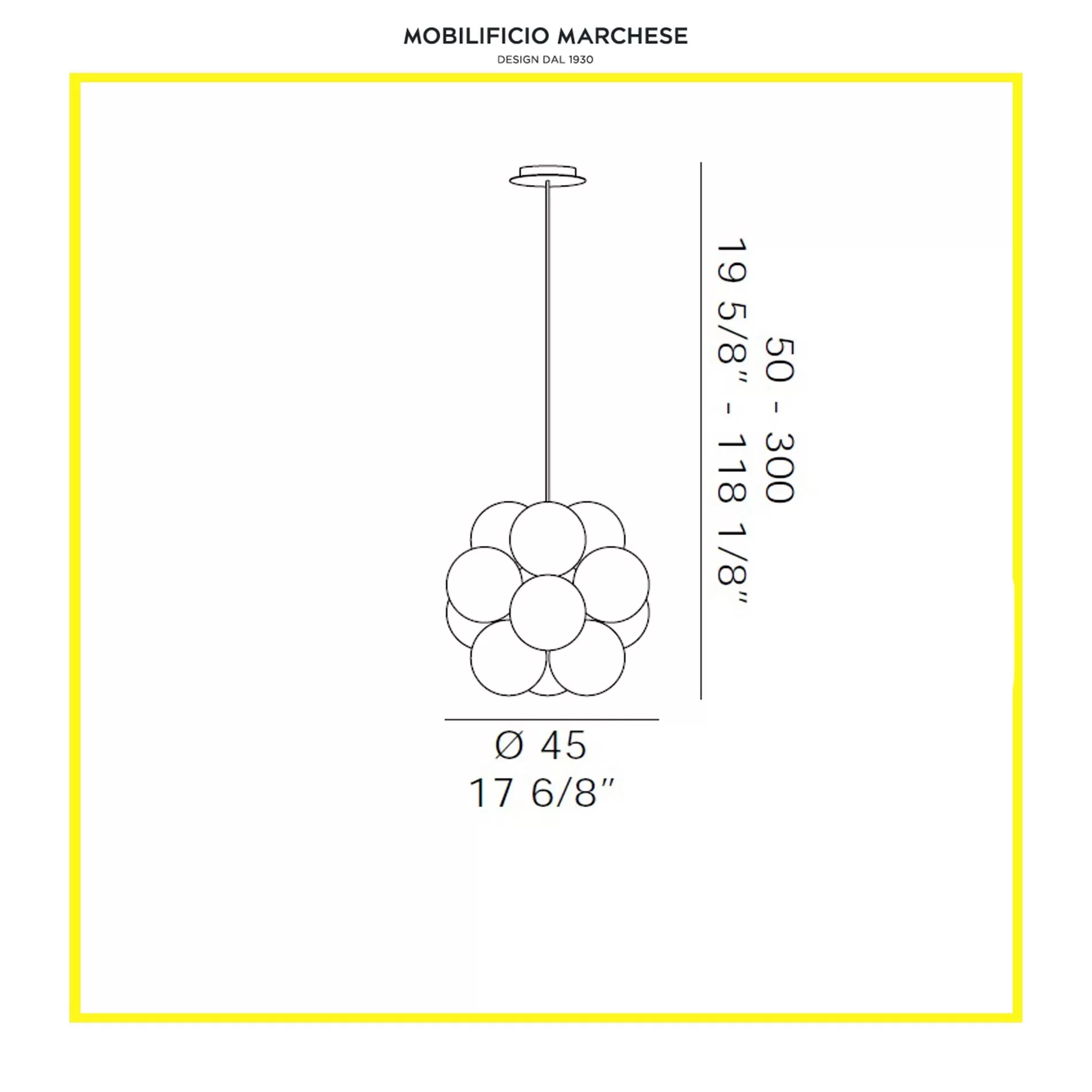 Babol by De Majo is a suspension lamp with a modern style. Elegant glass balls compose the lampshade and make this product a unique element of furniture, a real work of art.