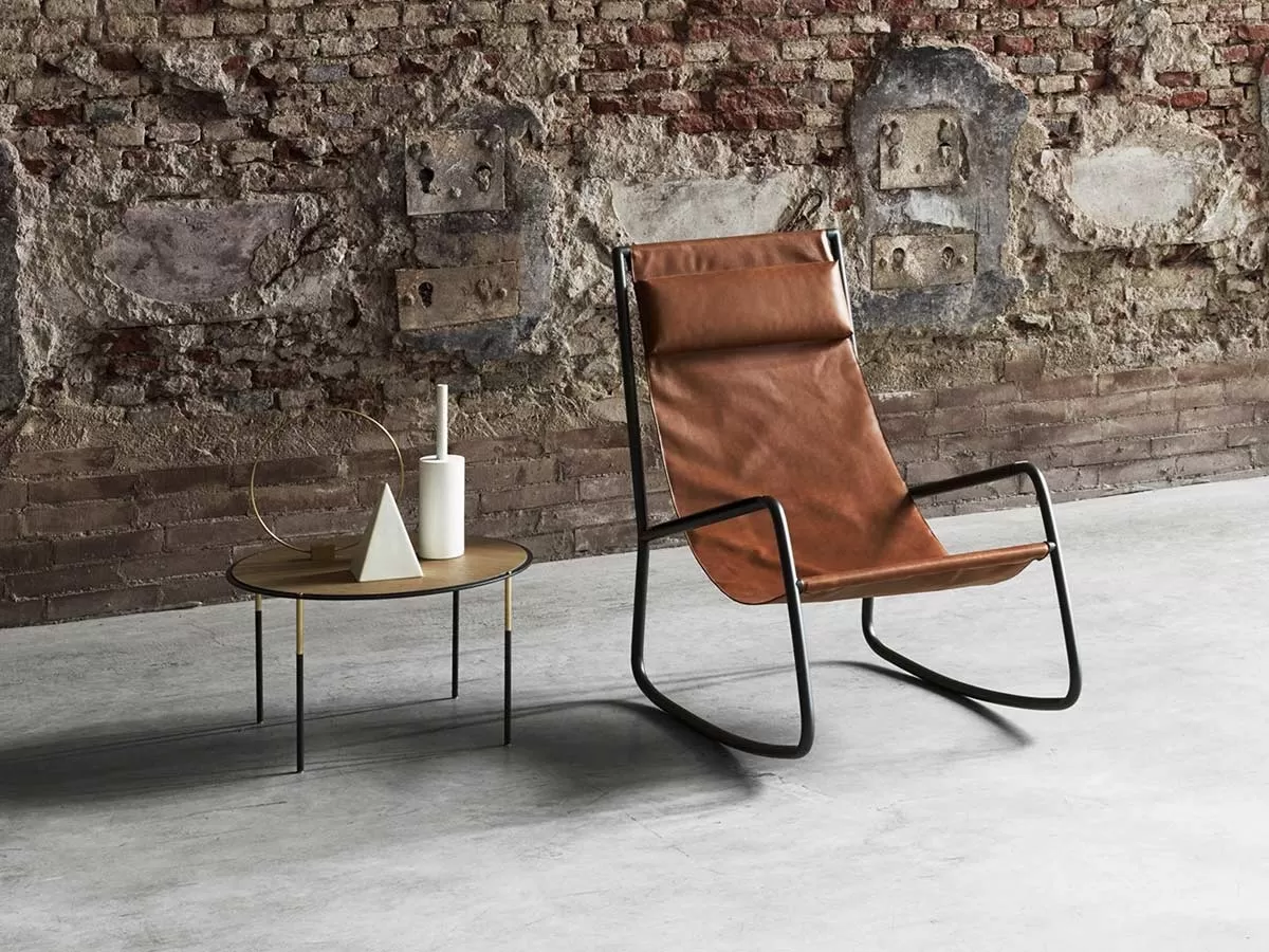 Flow is a modern and dynamic rocking chair. It is characterized by an ultra-light structure in gunmetal-painted steel and by a covering in fabric or leather which receives the body and accompanies your relaxation.