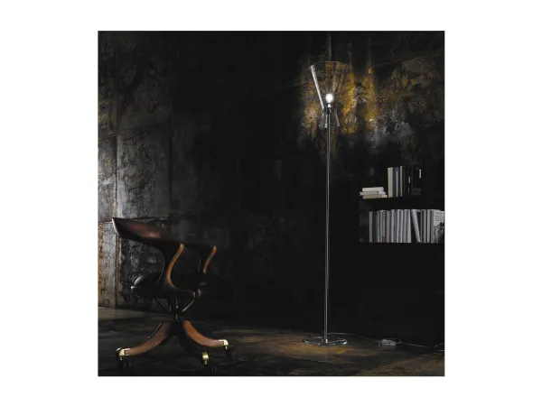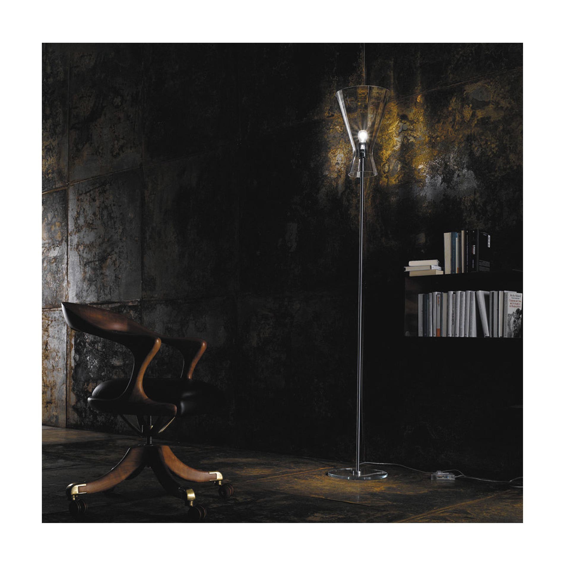 Memory R1 by De Majo is a floor lamp with a minimal and elegant design. The notion of balance is prominent in this unique element of furniture: a glass shade resting delicately on a metal frame. Available in different finishes.