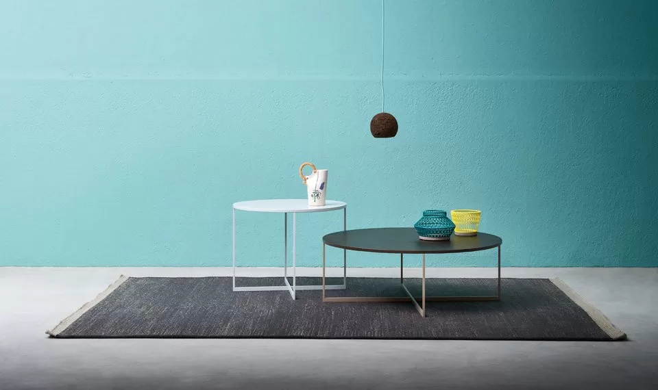 The Moca coffe table by Alf has a round shape with an extremely clean-cut silhouette, simple and essential but very particular and modern.