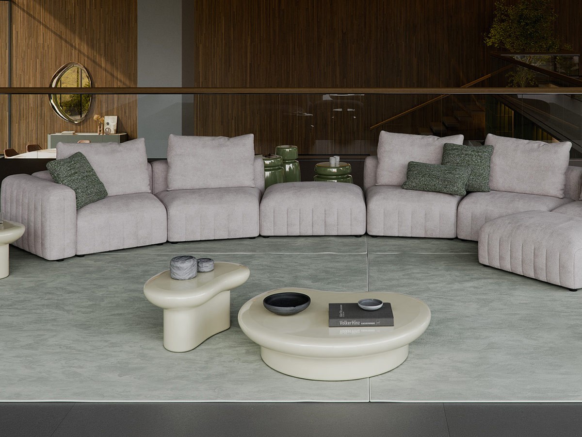 The Gibson sofa by Cattelan Italia is a modular system with a bold, contemporary character, inspired by cubism and its essential geometries. Composed of elements with varying heights and depths, it offers extraordinary design freedom, adapting to both residential interiors and hospitality spaces. Comfort is ensured by a deep seat with a soft-touch surface and polyurethane padding, while the tailored details express the excellence of Italian design.