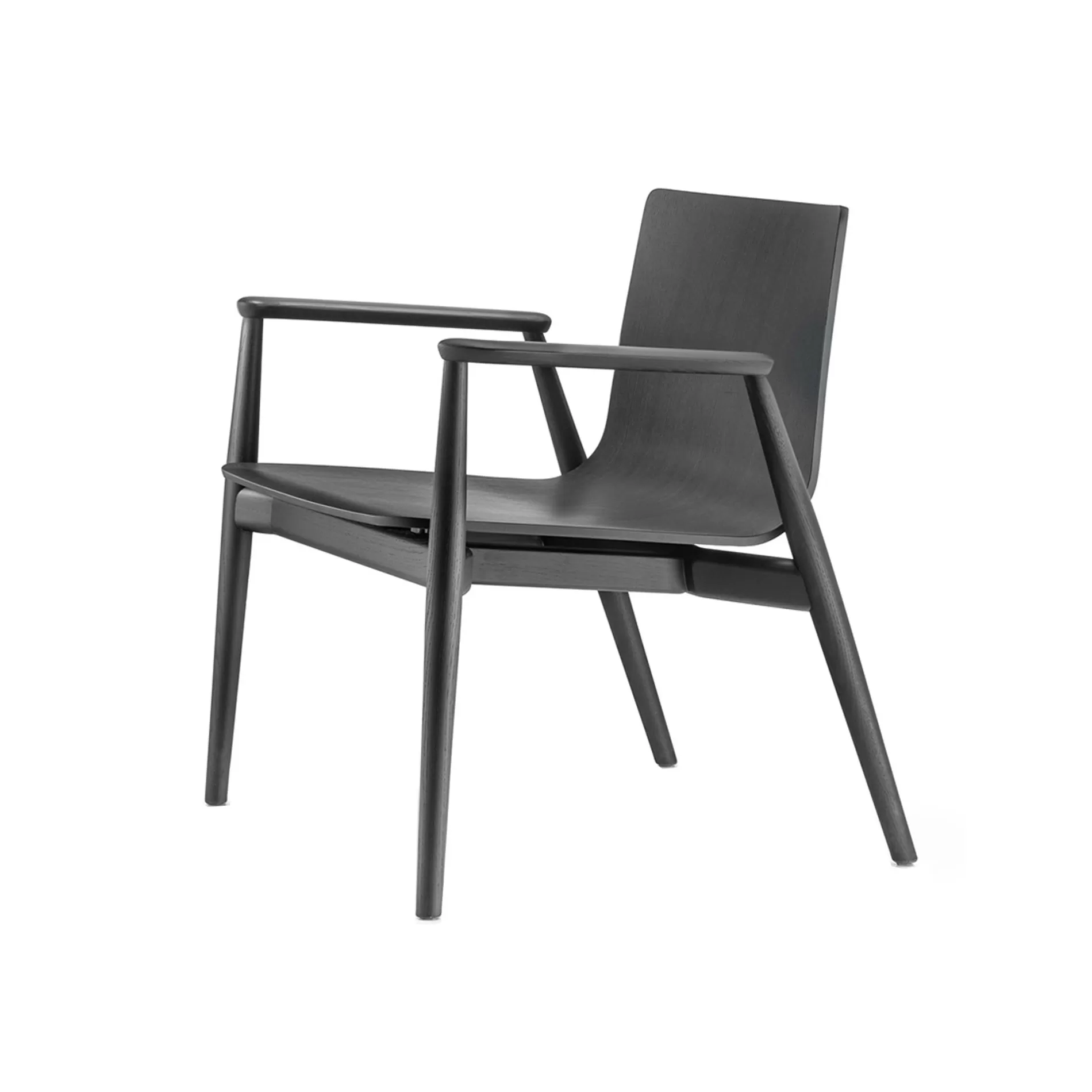 Malmö armchair, designed by Cazzaniga, Mandelli and Pagliarulo for Pedrali, has an ash timber frame and a plywood shell. Available in different colors.