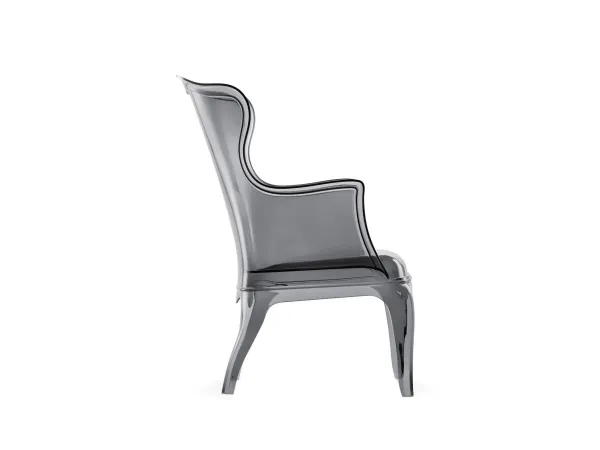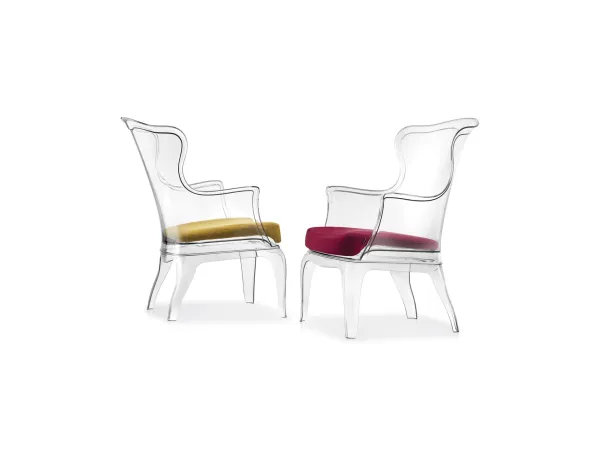 Pasha armchair is the perfect synthesis of tradition and innovation. Elegant and sophisticated, Pasha conquers with its classic forms combined to modern materials. This armchair is entirely made of polycarbonate and is suitable for indoor and outdoor areas, where add a touch of style. Available in different colors, full color and transparent. For the seat, characterized by soft lines and large proportions, is also available a velvet cushion: a new detail that makes unique this piece of furniture.
