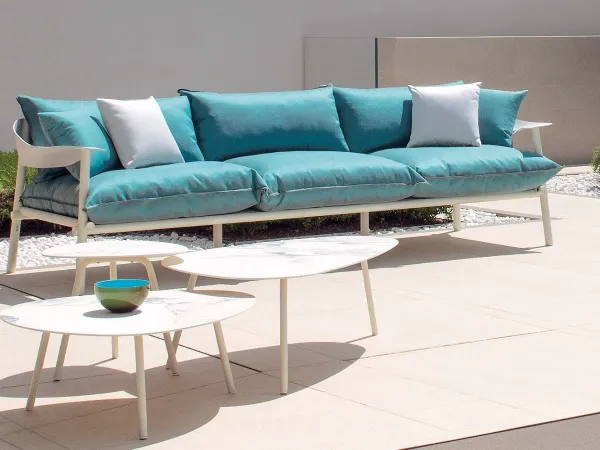 Terramare by Emu is a wrapping sofa with large dimensions. The essential and fashionable design makes it perfect to furnish indoor or outdoor spaces. The large and soft seat and back cushions make it really comfortable and guarantee unique relax moments. It is an element of furniture to read, meditate and sleep.