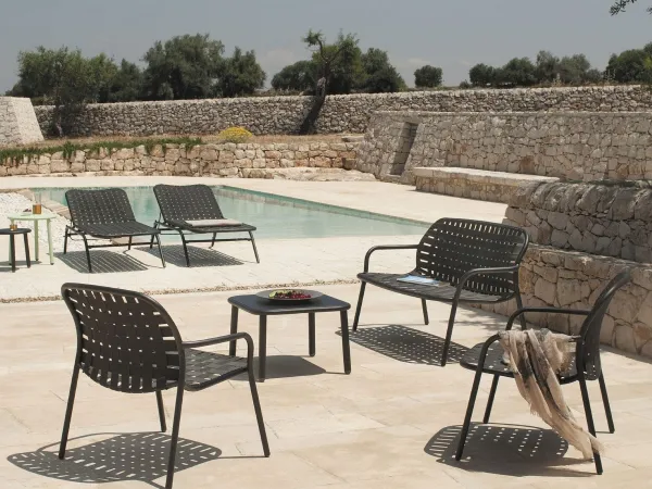 Yard by Emu is a sophisticated outdoor sofa. The woven elastic straps create a unique seat and backrest and add a eclectic detail in its design. An element of furniture that attracts attention, with a perfect balance between style and comfort.