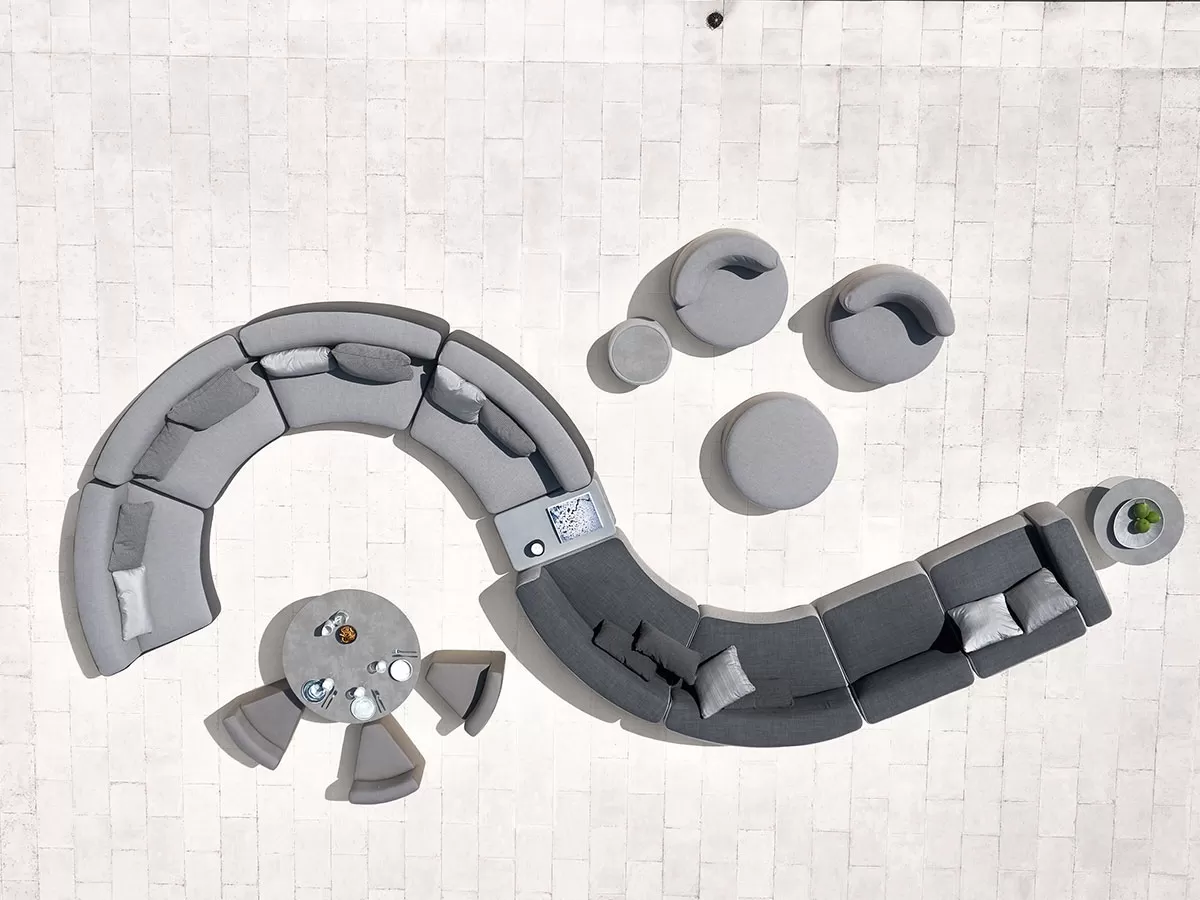 It combines simply geometrical elements with curvilinear elements in order to give you the chance to creates the perfect sofa for your garden and all your outdoor spaces. It was projected to be weatherproof and UV light resistant so that it is suitable for marine areas.