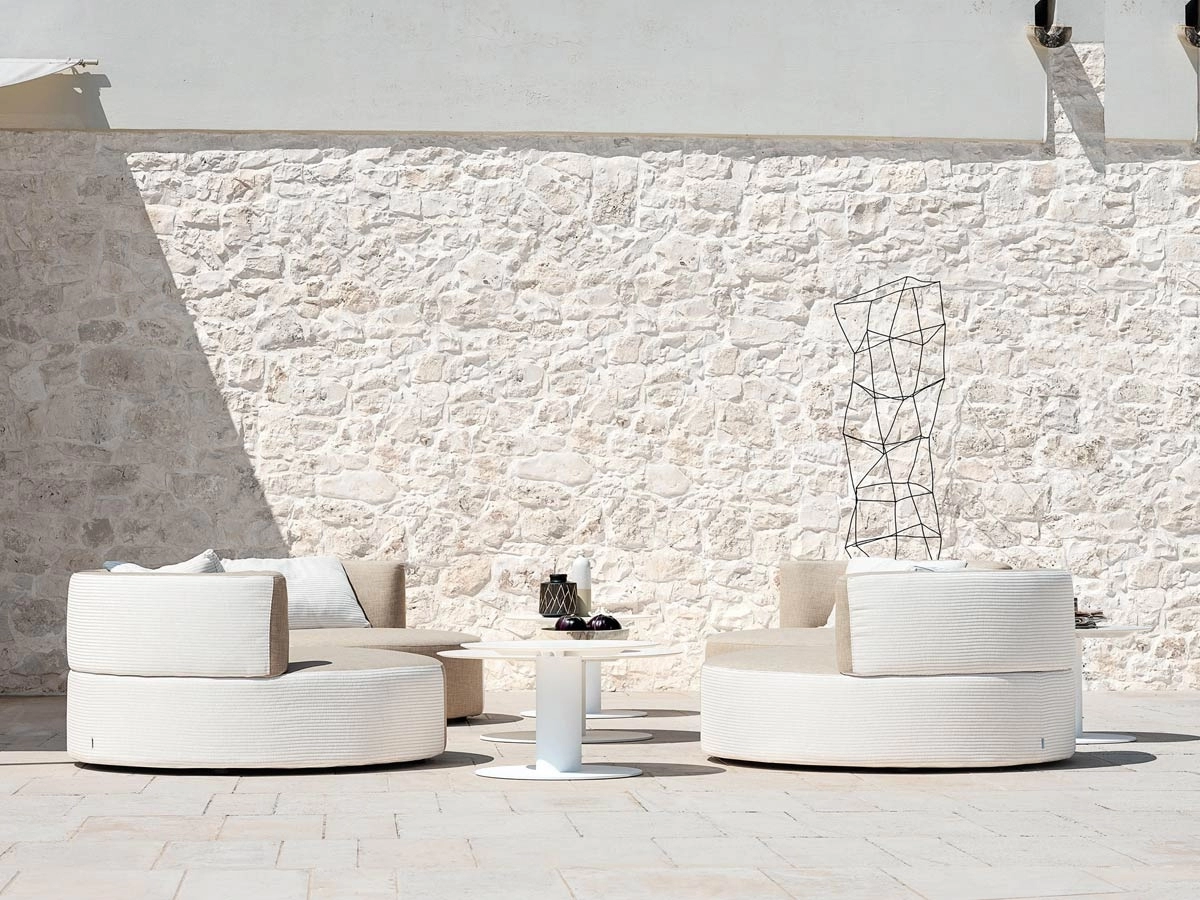 Attractive with its curved lines and rounded profile, it will envelop you at any time of day thanks to its wide seat and comfortable back cushions. You can combine two fabrics or, if you prefer, choose just one from the 220 options in the collection. Let's create your personalised Belt by Varaschin together. Contact us for more information and a special quote.