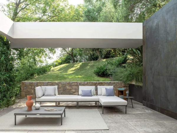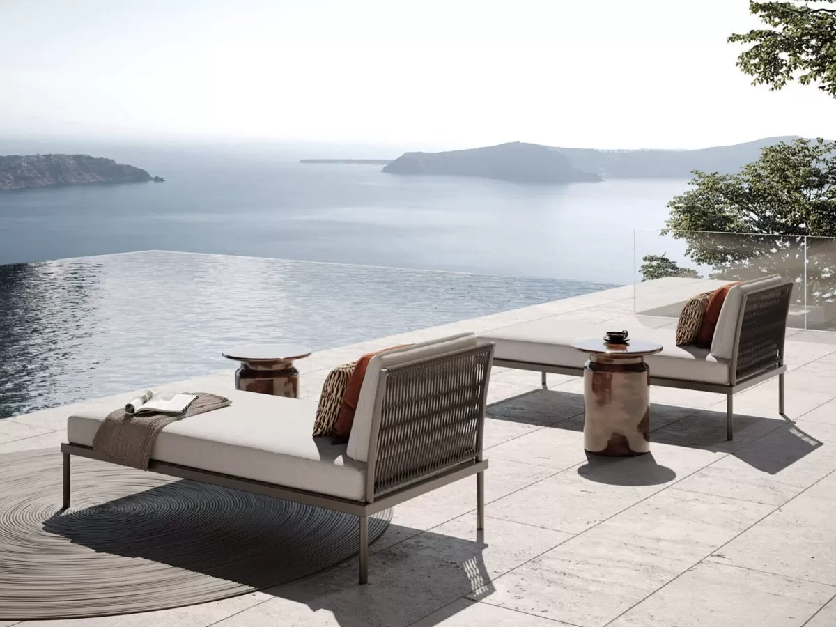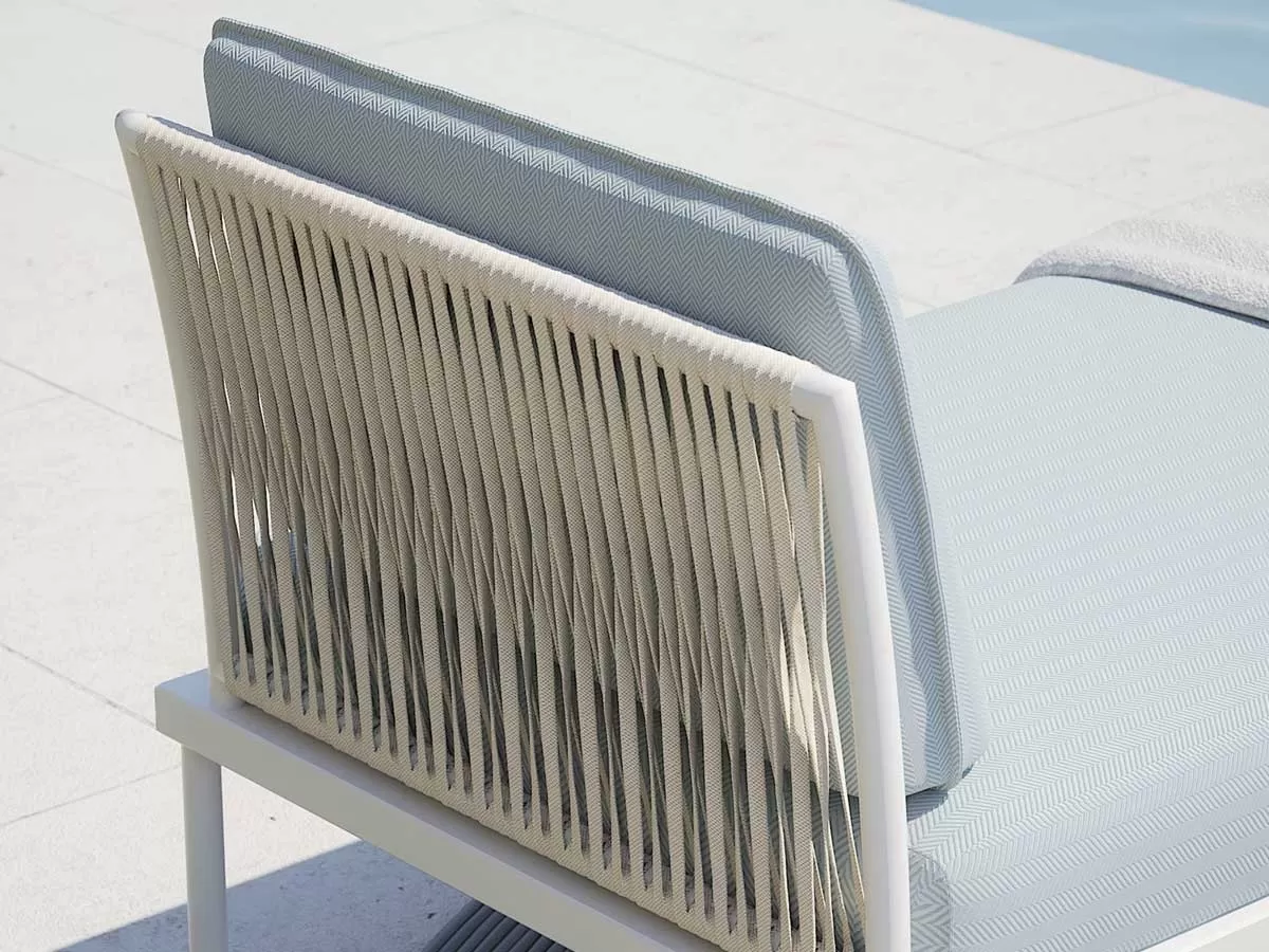 If you are looking for a chaise longue with an essential design and a Mediterranean flavor, the Flash chaise longue by Atmosphera is the ideal solution. Produced and designed in Italy by the luxury outdoor furniture brand, Flash is part of a set of outdoor furniture that includes modular sofas, armchairs and ottomans. Characterized by the unique handcrafted backrest weave, the Flash chaise longue has a soft appeal similar to textile weaves.