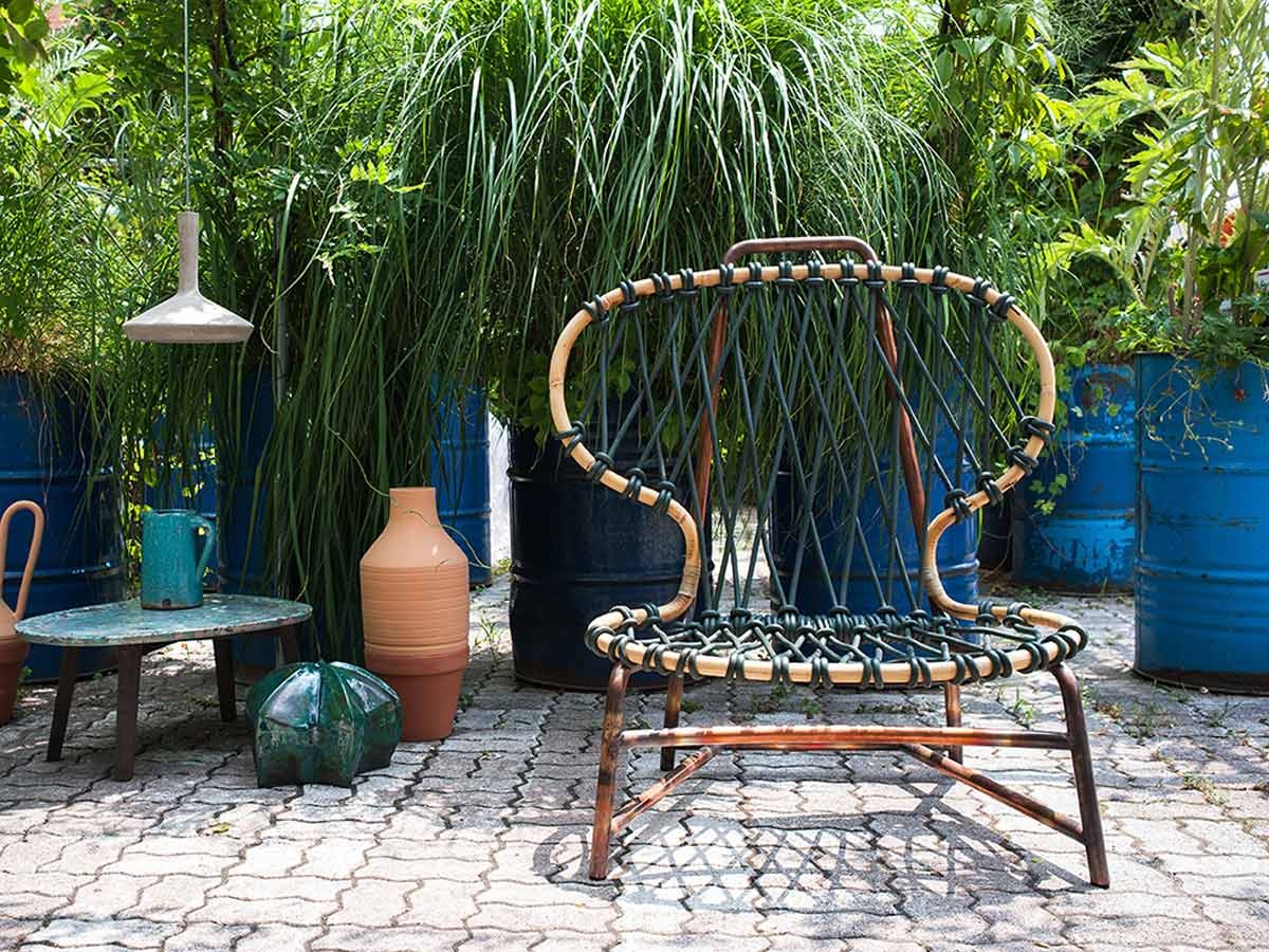 Manila by Baxter is an outdoor armchair with an ethnic, almost primitive style. The Manila armchair is a perfect example of the craftsmanship used by Baxter when making each product and in the attention to detail that makes them so unique. The leather weaves of the seat and back create geometric patterns that add an element of unique visual dynamism.