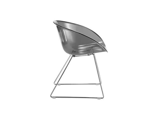 Gliss chair, designed by Claudio Dondoli and Marco Pocci for Pedrali, is a departure from the idea starts from the idea of an extremely comfortable chair, particular and very resistant. This chair have a transparent or full color polycarbonate shell and a chromed steel rod frame. Available in different colors, is resistant and comfortable, the perfect seat for Indoor or outdoor use.