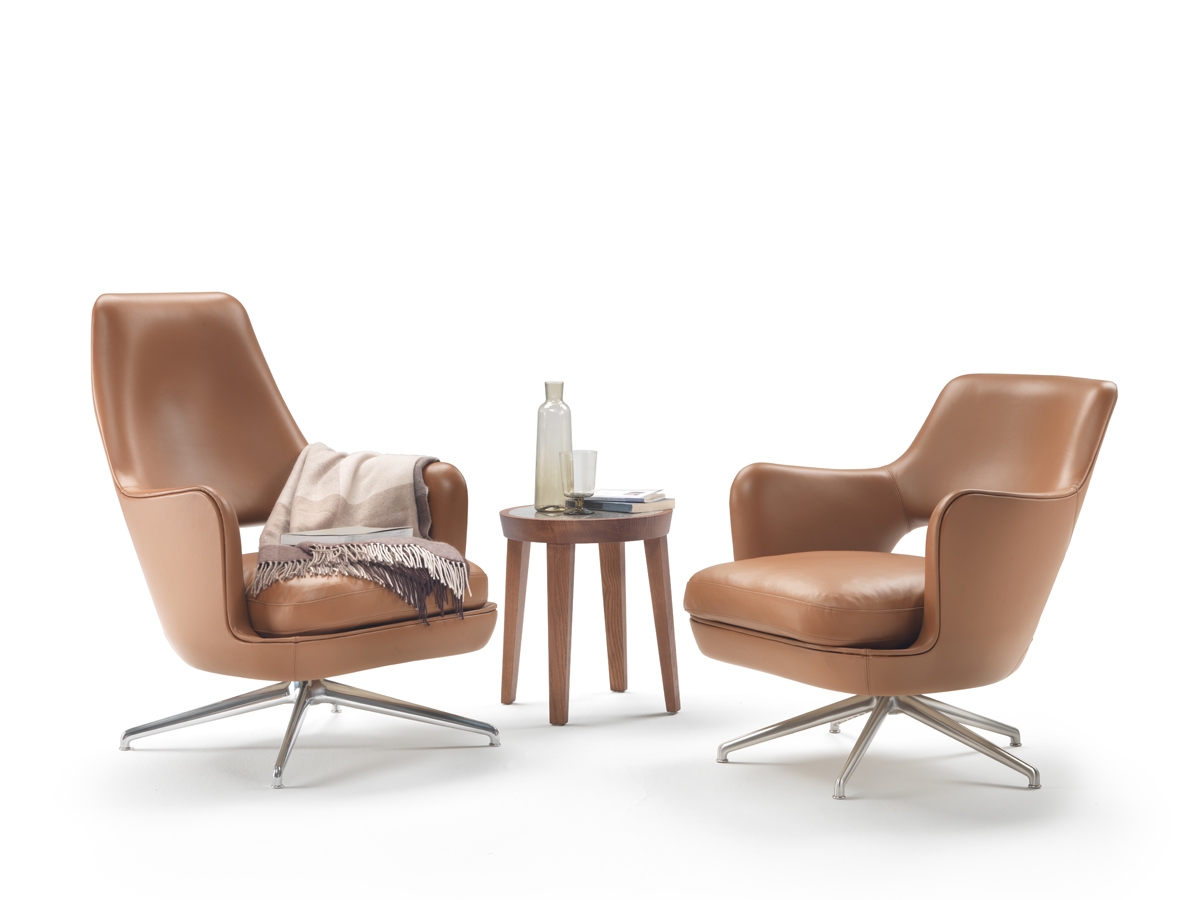 The designer Antonio Citterio has created the new Eliseo armchair for Flexform 2022 collection, adding an element of high quality craftsmanship and incredible comfort to the already well-known line of seats. The Eliseo armchair is characterised by its formal elegance and ergonomics, whose soft, enveloping lines will conquer you at first glance. The double shell structure in rigid moulded polyurethane and flexible polyurethane foam supports the seat cushion in sterilised goose down with a single-density non-deformable material insert. You can choose the base of your armchair between a 4/5-spoke swivel base with continuous mechanism in die-cast aluminium in satin, chrome, burnished, black chrome and polished anthracite finishes or the fixed base in solid canaletto walnut wood in various finishes.
