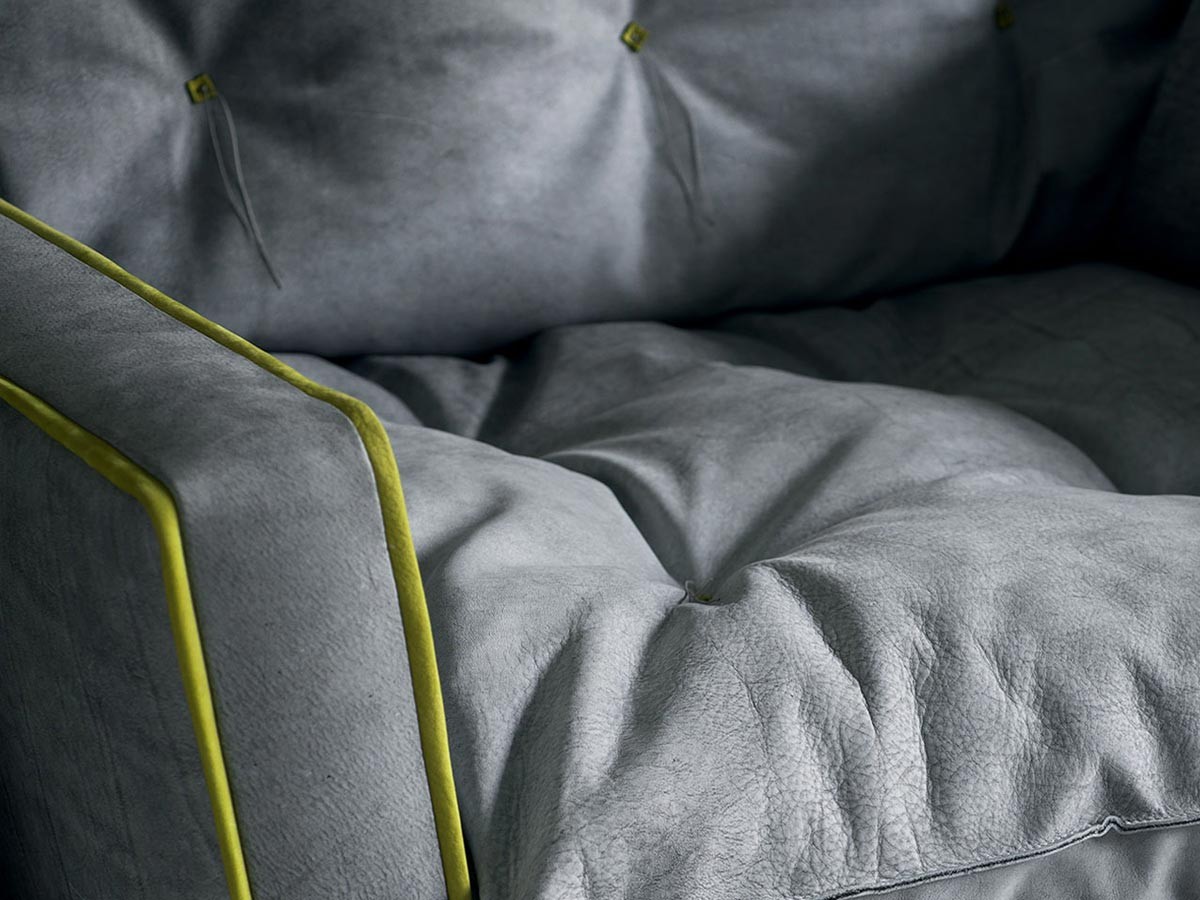 The large, oversized feather seat and back cushions rest on a large, solid frame with a swivel base. The end result is a perfect nest in which to spend unique moments during your day. The care and attention to detail, which makes Baxter a unique company, are represented by the presence of small leather details reminiscent of mattress stitching. Upon request, it is possible to customise the Sorrento armchair with the profile in the leather shades in the catalogue.