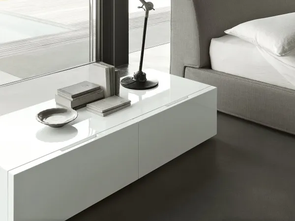 Flin is available in a wide range of colour finishes, matt or glossy lacquer, and in different sizes. For this reason, Flin will meet all your needs: whether for a small space or a larger one, Lema bedside table will always be perfect.