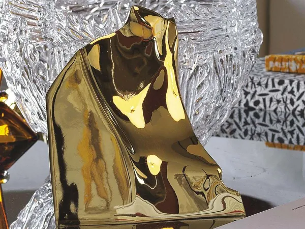 The coffee table Sereno di Driade has a perfect balance of turmoil and serenity, organization and symmetry like that of abstract expressionism. The forms themselves are created from shards of glass violently created by the artists, but they become unified in utter stillness by the inclusion of a simple flat sheet and the transformation of the group into polished steel. Request it at a special price.