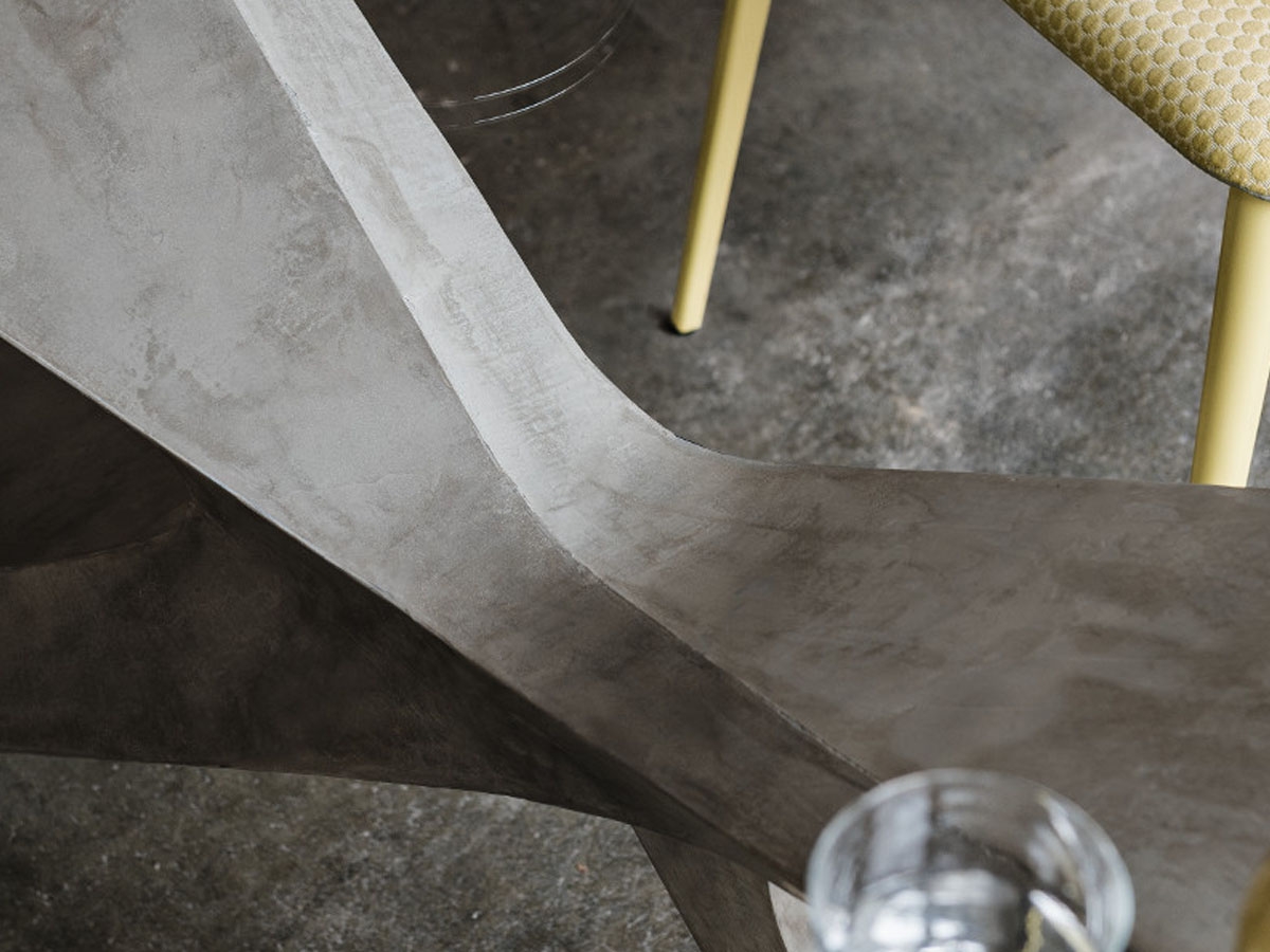 Nexus is a unique work of art. Shapes and materials are designed to create an unforgettable table. It has a geometric base made with Baydur® or brushed concrete, for an irresistible industrial design and glass or wood top that create a fashionable element of furniture. Available in different sizes and finishes.