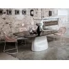Gran Sasso by Midj is a table with an unusual concentration of geometric shapes and pastel colors. A work of art with a strong personality that is able to make a simple dining room a fashionable area to eat, talk and live with family and friends.