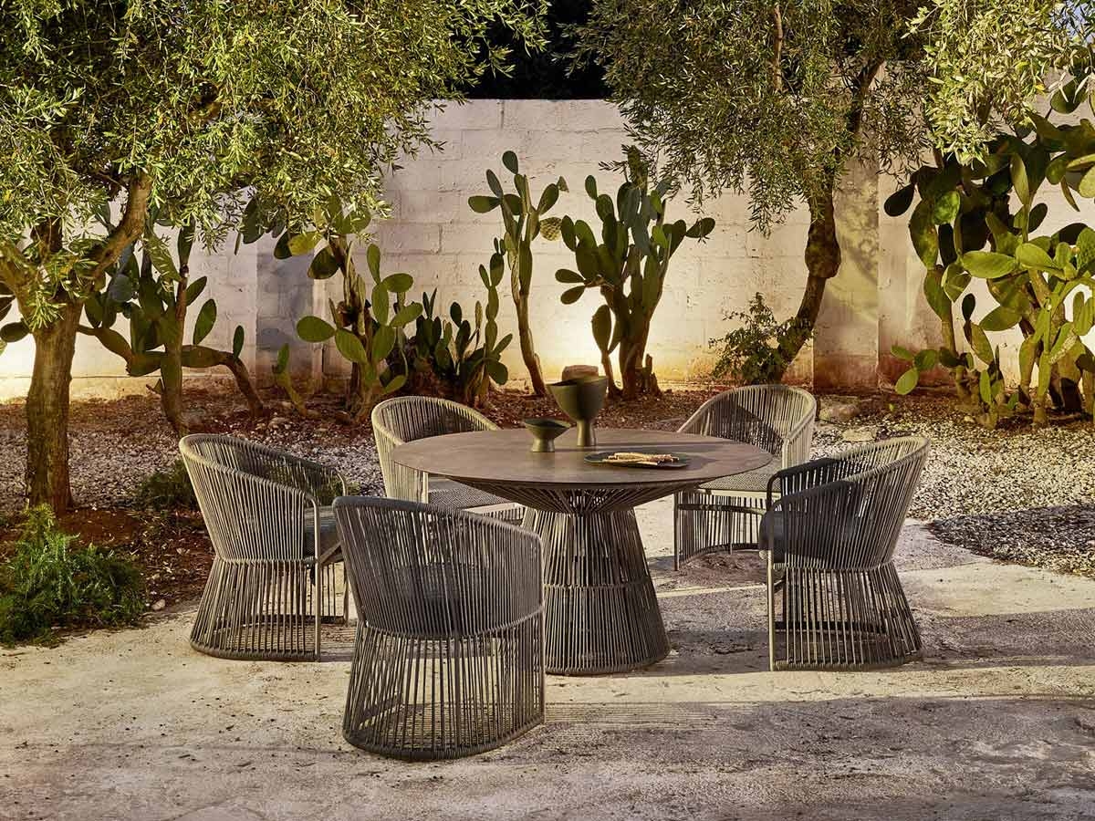 Varaschin Tibidabo table is a work of art inspired by nature and evoking the idea of a tree, full of branches growing upwards. The image has been reproduced in this piece of furniture thanks to an artisanal weaving of synthetic fibre, making the table one of the incredible elements that make up the Tibidabo collection.