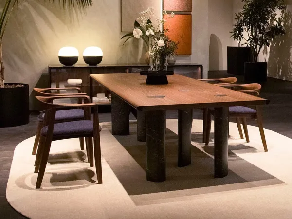 Osmose table is part of the new Porada collection 2023. A dining table with a really strong personality, presented at the Salone del Mobile where he won everyone over with his personality and strong stage presence. An interior design masterpiece made with solid wood and marble: a perfect match to make your dining room unique. Choose the inimitable quality of Made in Italy furniture and renew your home with the Osmose table by Porada, totally handmade with passion.