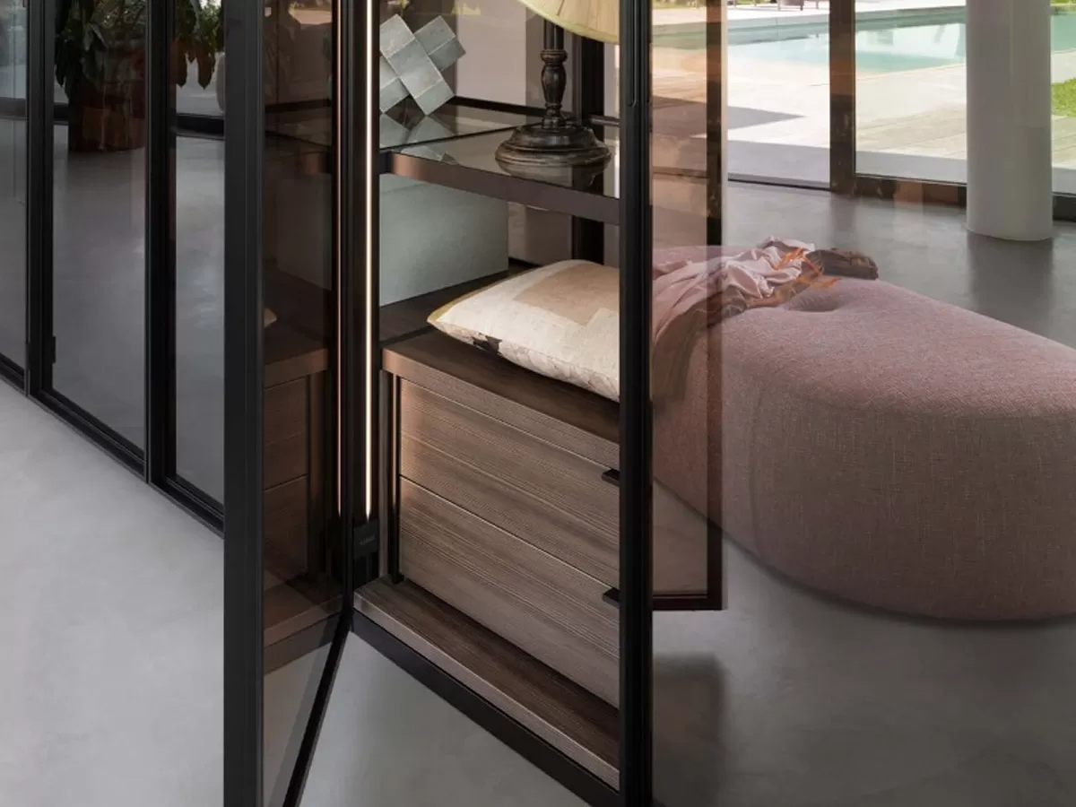 Tian in the Chinese world means sky. It is not a simple wardrobe but a realy design masterpiece with strong aesthetic impact, born to be the star of the night area of your home. A cross between a display case and an aquarium, it illuminates the centre of any room and can be used to unite or divide it.
