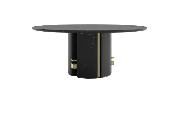 La mesa de comedor Ercole es de mármol y presenta lujosos detalles metálicos: su diseño innovador y la alta calidad de los materiales la convierten en un mueble apreciado por todos.