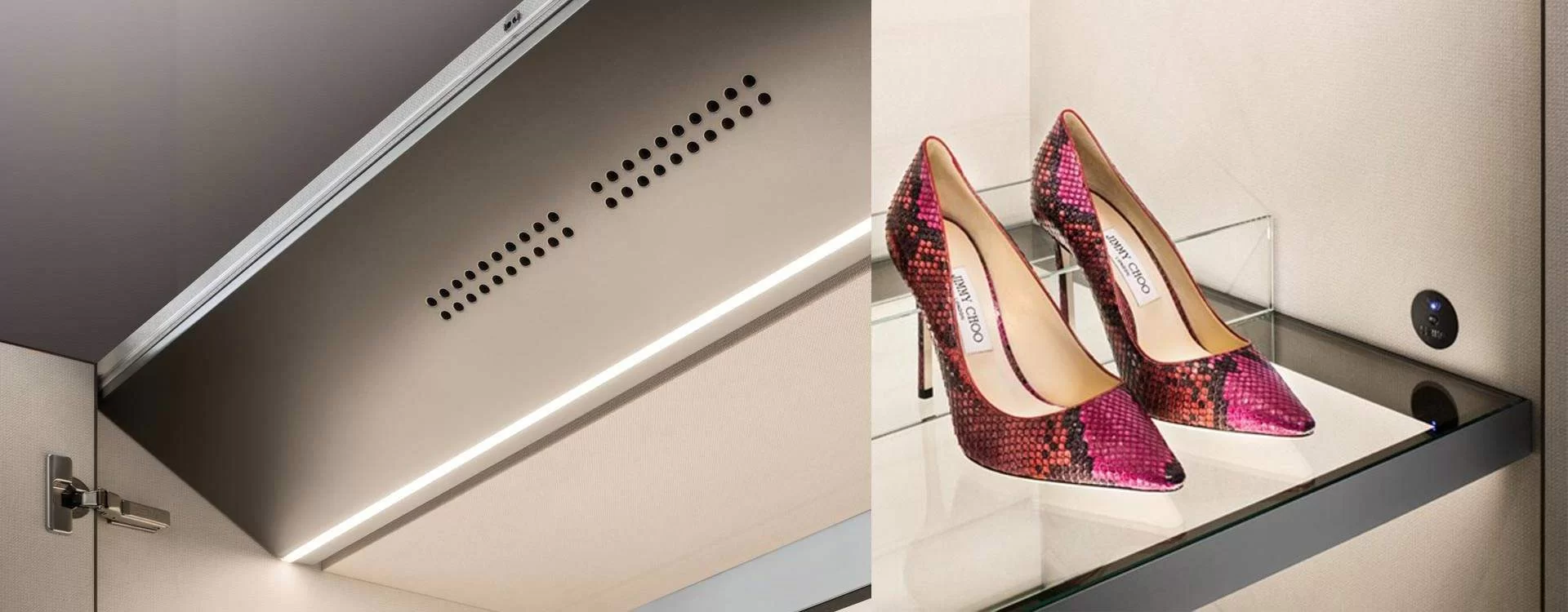 Una reacción natural, por lo tanto, y el principio activo destruyen virus, bacterias, olores y mohos, eliminando los rastros de la ropa y los accesorios. Simplemente coloque sus chaquetas, suéteres, pantalones, abrigos, bolsos y zapatos en el armario, y cierre las puertas. El sistema de desinfección funcionará automáticamente, sin dañar las telas o materiales.