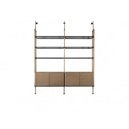 Aria es formal, prolijo, elegante con columnas delgadas. Estantes en cenizas o vidrio ahumado, cajoneras y recipientes en cenizas se inclinan sobre un marco sólido con patas de metal negro mate. Diseñado por el prestigioso David Dolcini, Aria está totalmente hecho a mano en Italia por maestros artesanos Porada . Una pequeña obra de arte a mano, perfecta en cada detalle. Puede fijarlo al wall, sin embargo, también es posible usar esta estantería como un divisor independiente. Elija Aria también para su oficina, puede almacenar sus libros y documentos.