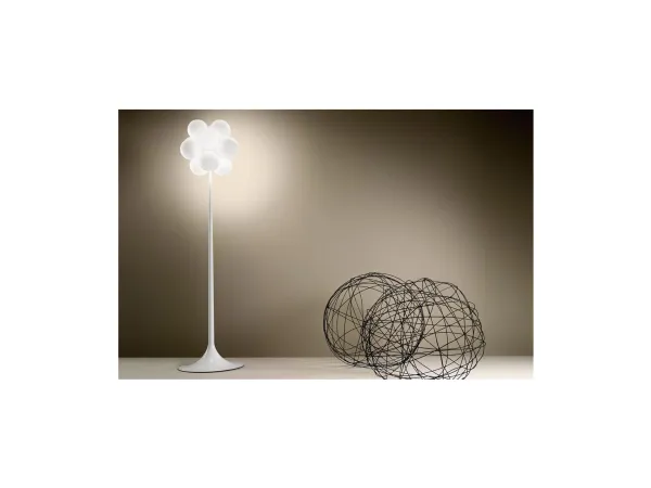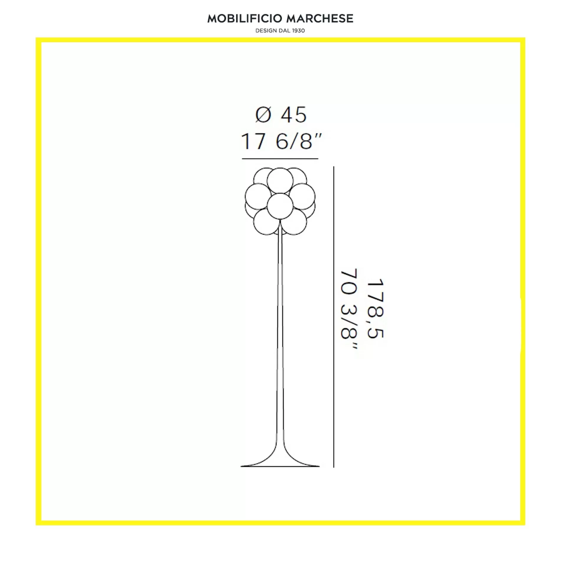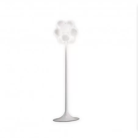 Babol by De Majo es una lámpara de pie con un estilo moderno. Elegantes bolas de vidrio componen la pantalla de la lámpara y hacen de este producto un elemento único de mobiliario, una verdadera obra de arte.