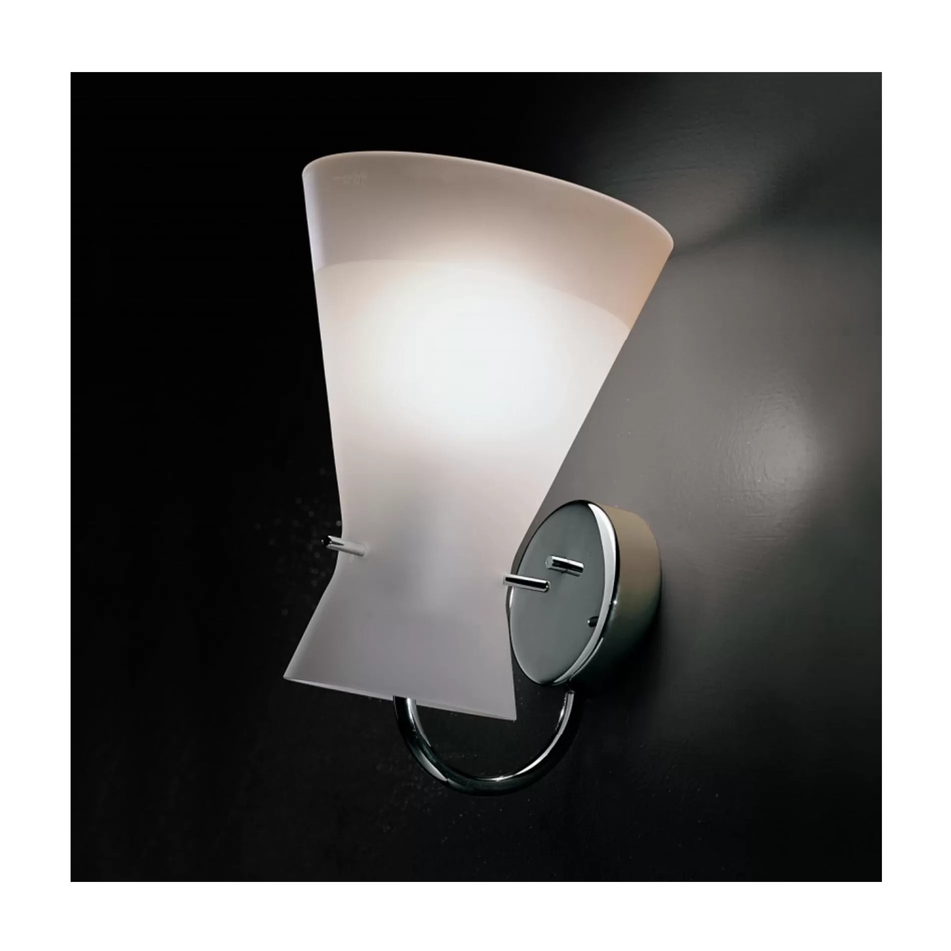 Accesorio de metal cromado. El vidrio shade disponible en los siguientes colores: blanco satinado, transparente, esmerilado con borde satinado y esmerilado con bordes claros. Bombilla halógena transparente HSGSA/C/UB 77W o 150W con base E27. Bombilla halógena PAR 30 HAGS/UB 75W con base E27.