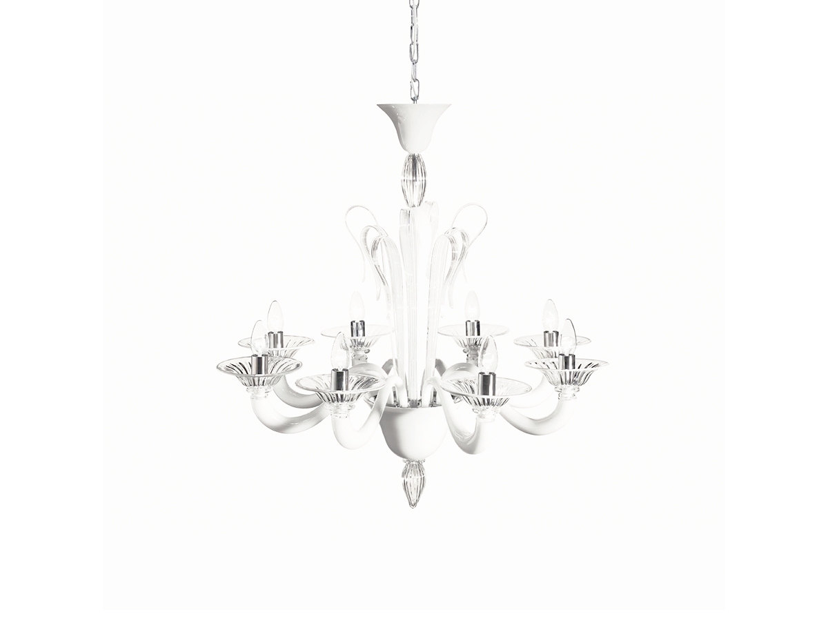7088 K8 by De Majo es una lámpara de araña que da prestigio a cualquier salón y difunde un ambiente fascinante light. El material es el vidrio de Murano, siempre dominante. Su light es intensa y romántica. Un elemento de mobiliario con una fuerte profundidad emocional.