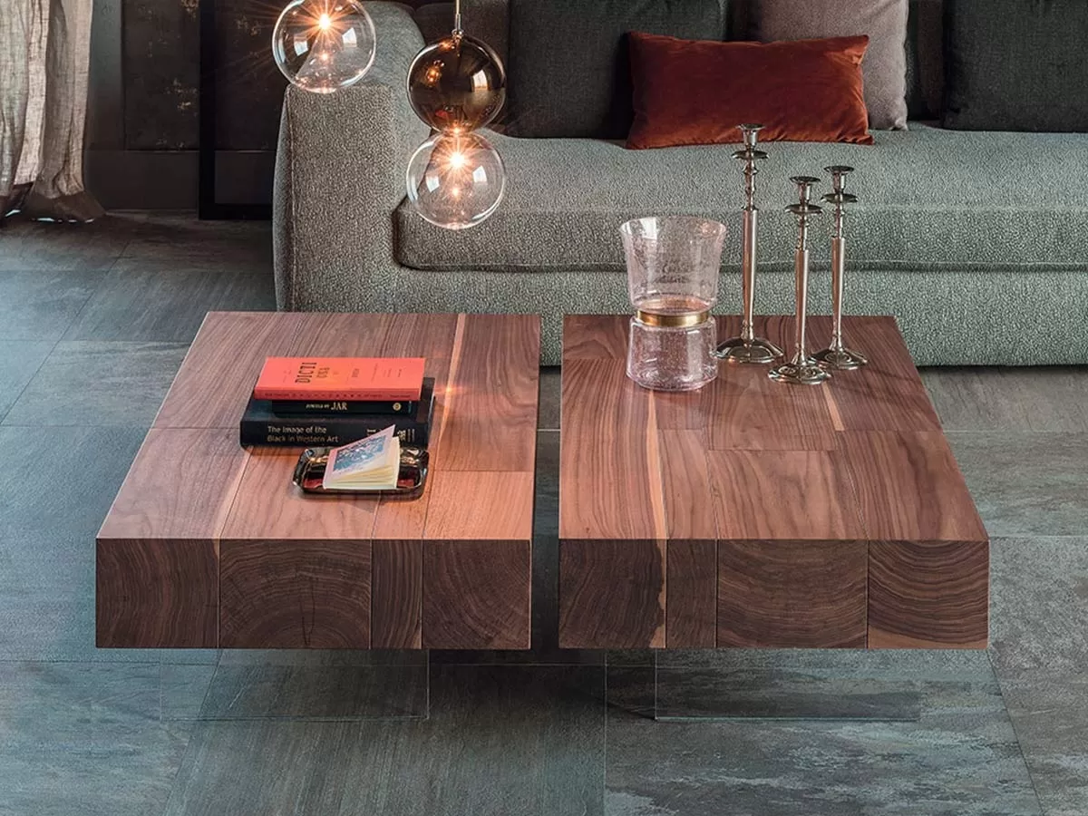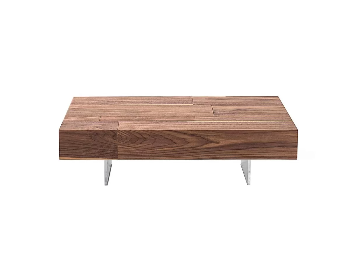 Lingotto tiene una tapa de madera en nogal Calanetto con una personalidad fuerte y firme. Los pies trasparentes hacen que esta mesa coofee sea light y versátil. Un original elemento de mobiliario que equilibra la elegancia atemporal de la madera y el diseño moderno y esencial. Disponible en dos tamaños diferentes.