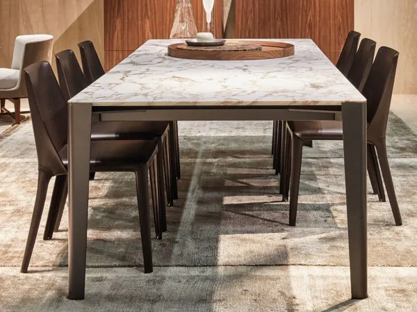 Iseo de Flexform es una mesa de comedor refinada. La belleza increíble de las formas limpias y una estética basada en la resta lo convierten en un elemento único del mobiliario. La combinación entre el metal y el mármol crea un increíble equilibrio de materiales. La solución perfecta para un comedor sobrio y elegante.