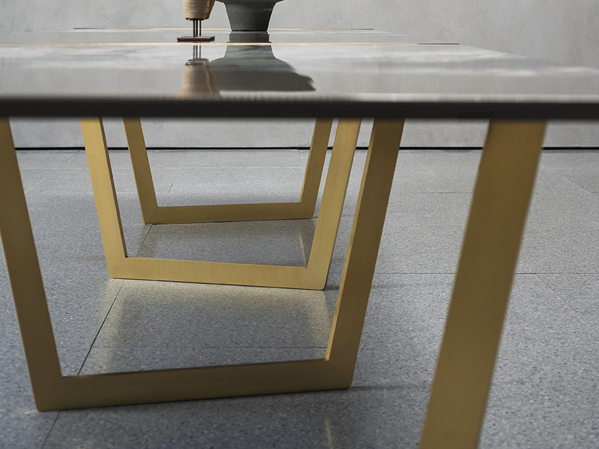 Pangea es una mesa de comedor de lujo y de moda pero su diseño es minimalista y sin excesos. Las formas geométricas y los materiales de alta calidad juntos crean una obra de arte única. Fabricada con una atención extrema por cada detalle, cuenta con unas patas de mesa de trapecio invertido en latón satinado con un acabado en cera que destaca por su grace así como por su aspecto único en la parte superior de la mesa. La inusual tapa combina mármol y MDF pulido en láminas de aluminio de refuerzo, para que tu comedor sea inolvidable Contáctanos hoy mismo y descubre todos los tamaños y acabados disponibles.