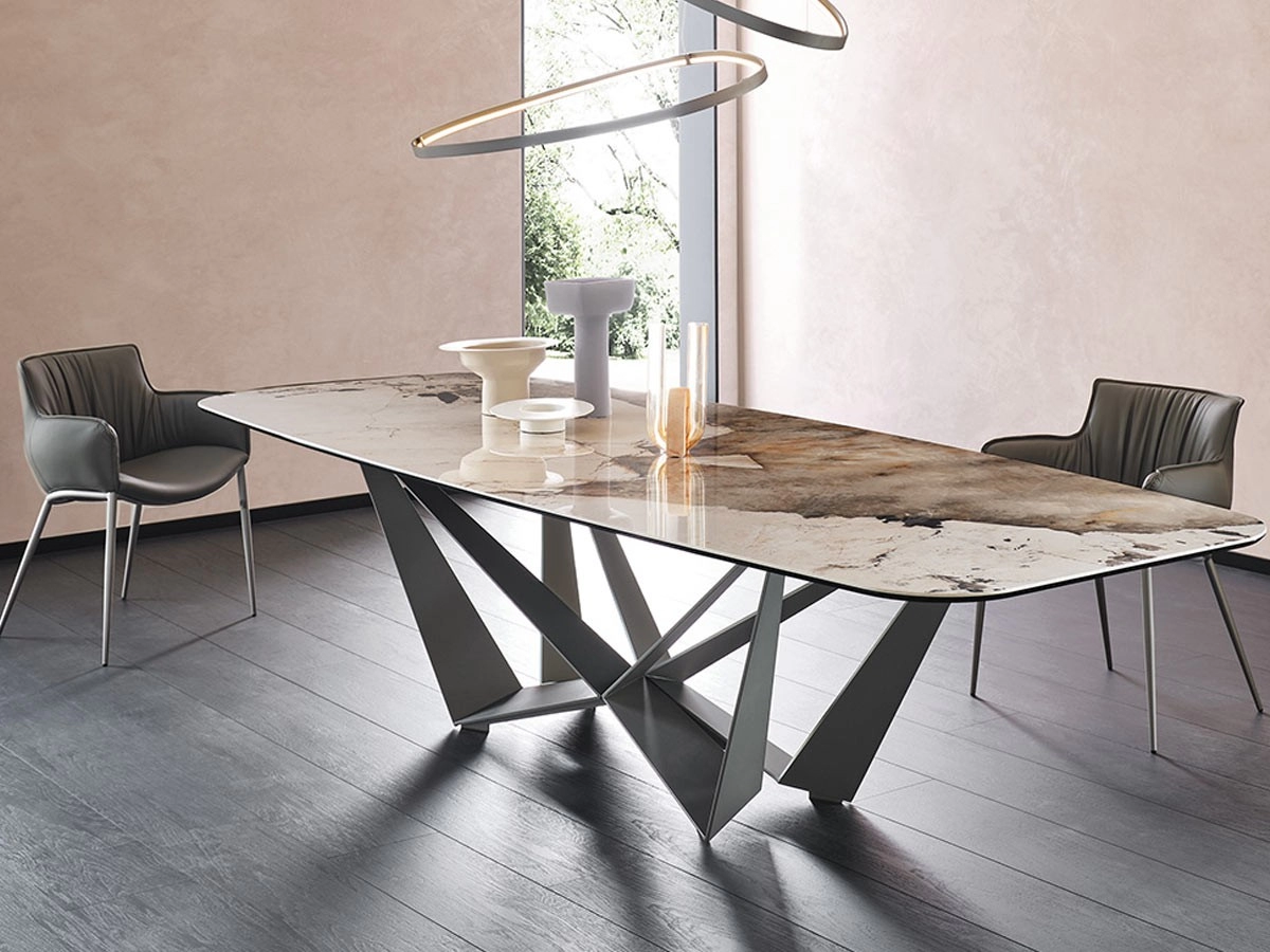 Skorpio Keramik de Cattelan Italia es un mueble único con una base geométrica de acero combinada con una tapa de keramik. Un equilibrio perfecto entre diseño y calidad: una obra maestra made in Italy nacida para ser la estrella de tu comedor.
