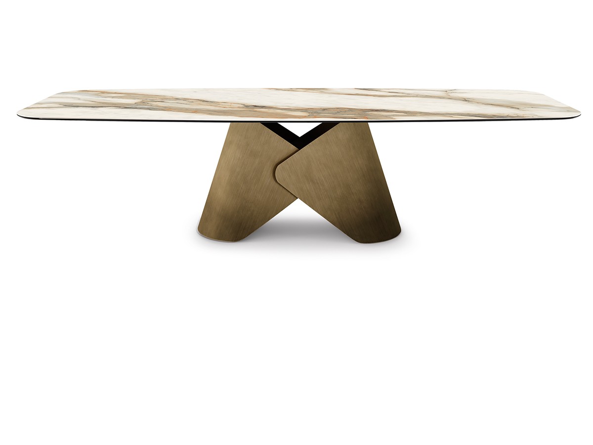 Cattelan Italia presentó en el Salone del Mobile 2023 la nueva mesa Scott Keramik. Un mueble de diseño extremadamente moderno, todo para ser contemplado, como una obra de arte. Lo que la hace única es la base de metal cuya forma recuerda el cuello de una camisa, dando a esta nueva mesa de Cattelan Italia un efecto óptico rígido y austero. La suaviza el elegante tablero de cerámica efecto mármol, que también la hace perfecta como mesa de reuniones. Disponible en diferentes tamaños y acabados.
