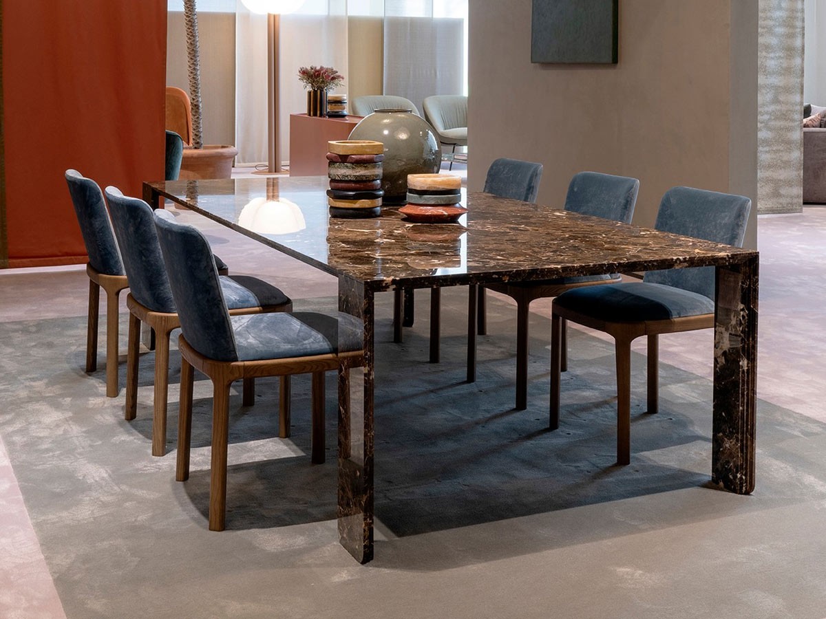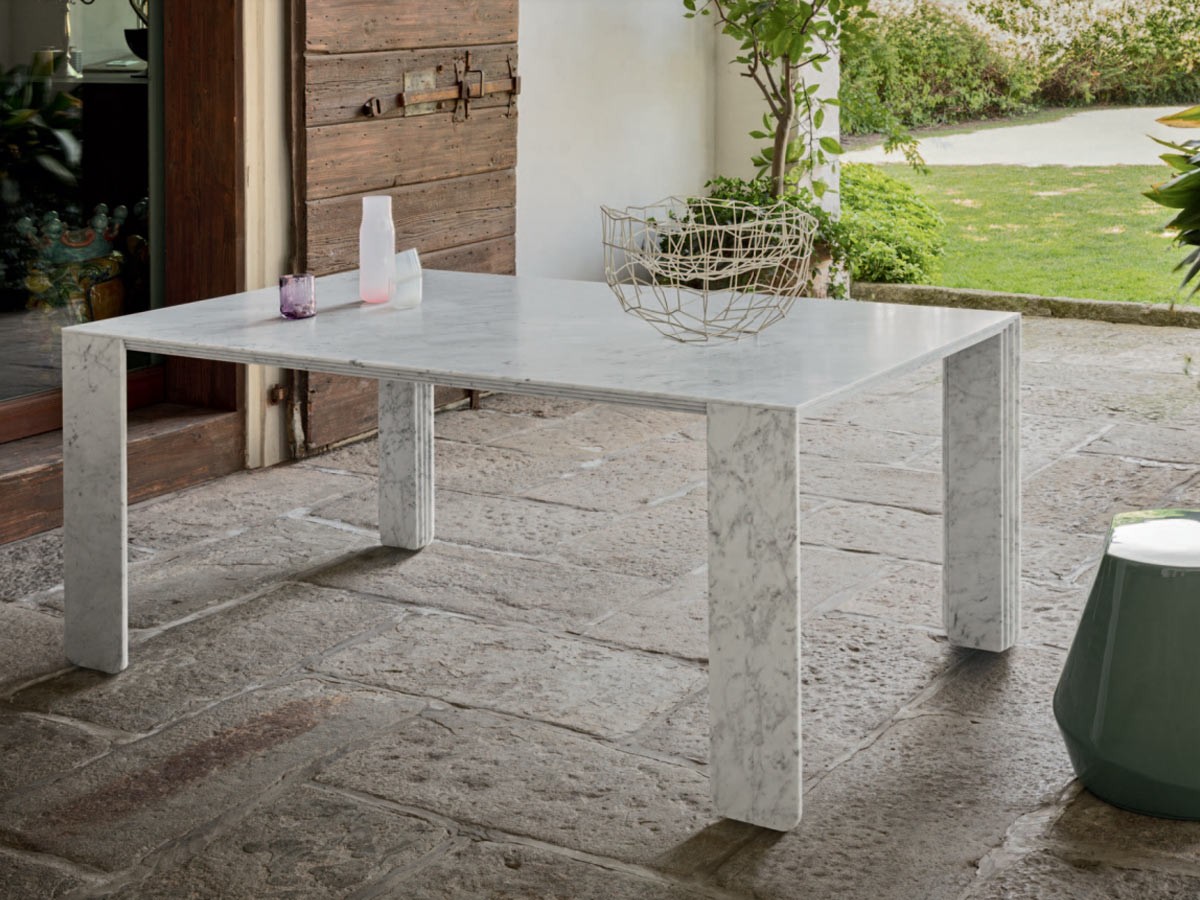 La mesa Corinto de Pianca presenta un diseño escultural, refinado y elegante que encierra un encanto único. La mesa, diseñada por Luciano Marson y CRS, está realizada íntegramente en mármol y nace como resultado de renovados equilibrios entre materia y geometría. Corinto es una mesa de comedor disponible en un único tamaño, pero personalizable en el acabado del mármol: puedes elegir entre los mármoles Gioia di Carrara, Fior di Pesco, Emperador y Grafite.