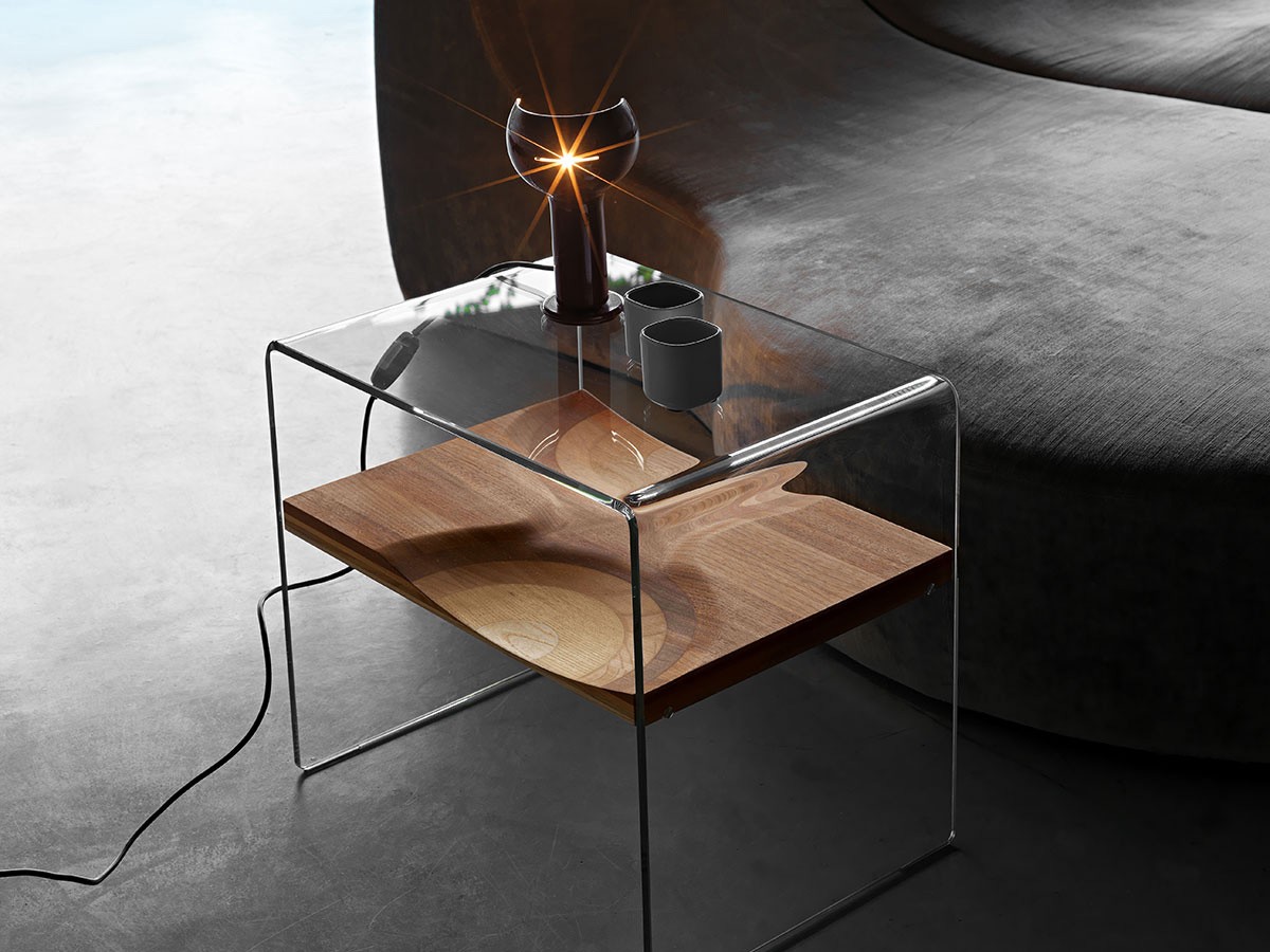 La mesa de centro Bifronte de Horm Casamania es uno de los complementos de mobiliario nacidos del diseño original del banco Ripples de Toyo Ito, ganador del Compasso d'Oro 2004. Ideal para amueblar el salón, flanquear un sofá o colocarla en el centro de la zona de estar, la mesa de centro Bifronte presenta una pequeña porción de Ripples enmarcada en un puente de cristal extraclaro, dando la sensación de que flota en el aire. Tanto si tienes una decoración de estilo clásico como moderno, la mesa auxiliar Bifronte de Horm encaja con cualquier mueble, aportando un toque aún mayor de elegancia y sofisticación.