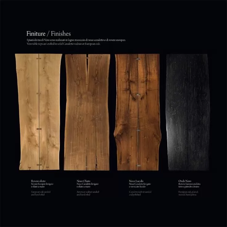 La mesa Vero de Arte Brotto es una obra de arte única y el resultado de un increíble trabajo humano. La mesa Vero se realiza mediante el uso de paciente, tiempo y energía. La mesa está disponible en Nogal Canaletto, Roble o Nogal Pulido. Disponible en muchas dimensiones y bases diferentes.
