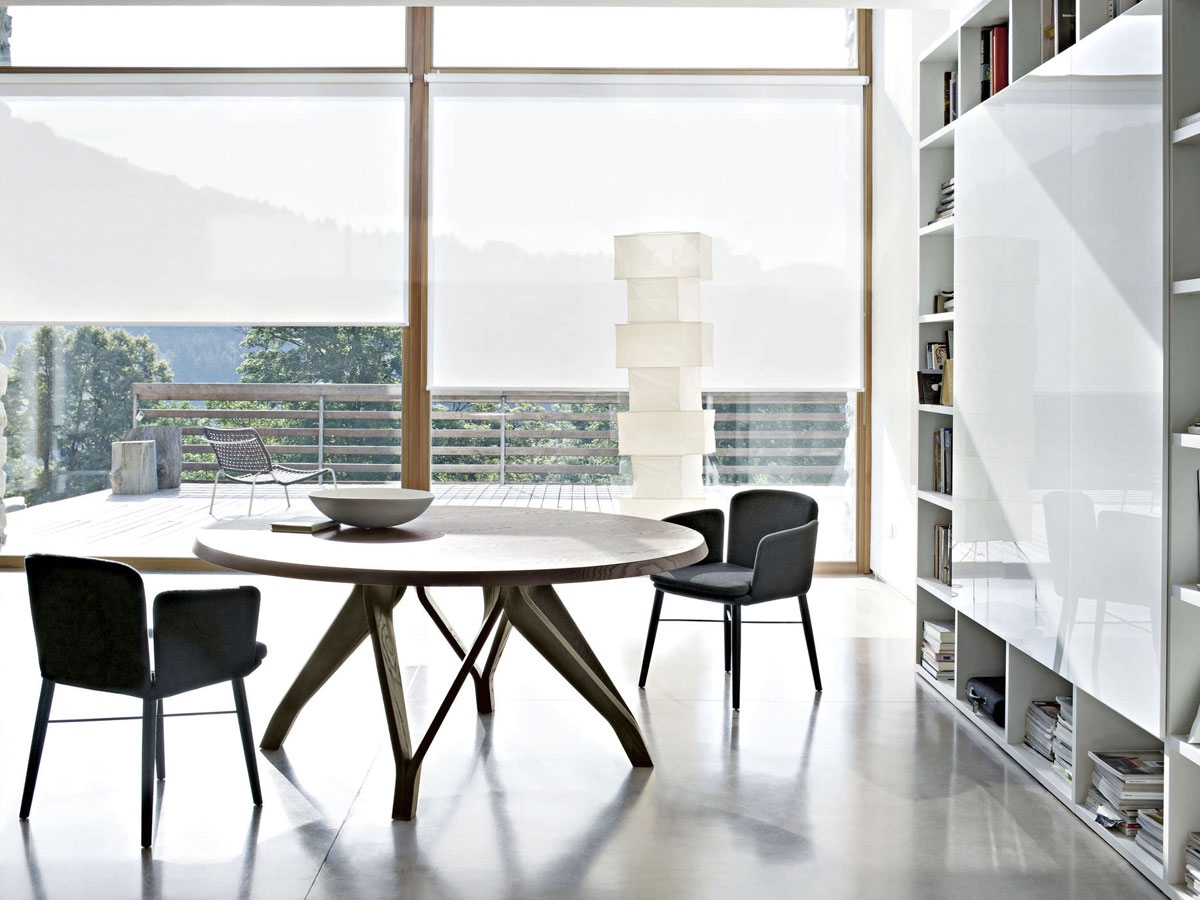Wow tabla, firmada por Toan Nguyen para LEMA, es un ejemplo perfecto de madera utilizada para un objeto importante. Tiene un diseño esencial y moderno, con líneas curvas suaves. La parte superior está sostenida por una escultura real, una cinta continua de madera, una forma curva y sinuosa. Una mesa redonda que se convierte en centro de mesa de comedor gracias al color de sus materiales, lugar electivo para compartir momentos. Disponible en dos tamaños diferentes.