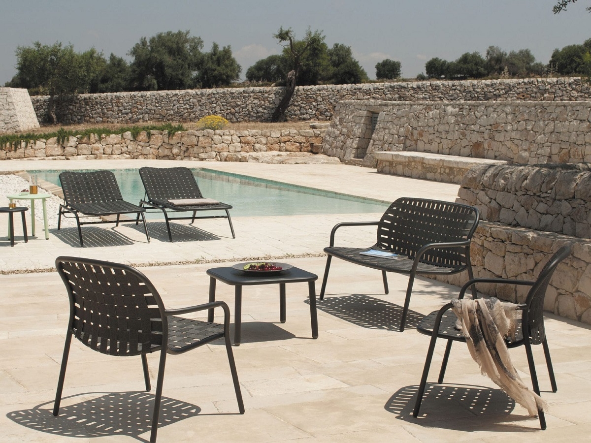 Yard by Emu es un sofisticado sofá al aire libre. Las correas elásticas tejidas crean un asiento y respaldo únicos y agregan un detalle ecléctico en su diseño. Un elemento de mobiliario que llama la atención, con un equilibrio perfecto entre estilo y confort.