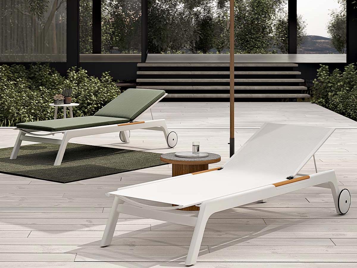 Con su diseño limpio, puro y atemporal, Nevada se caracteriza por sus inserciones de teca que añaden un toque extra a la estructura minimalista. Nevada es una tumbona de aluminio de color grafito o blanco que se adapta a cualquier tipo de entorno, ya sea residencial o contract.