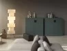 Conchiglia está formado por compartimentos cerrados por puertas lacadas, que pueden personalizarse utilizando colores contrastados para las puertas y el interior del compartimento.