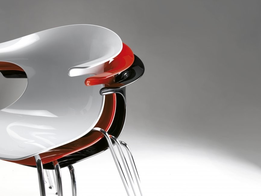 Silla loop de Infiniti Design, compuesta por una sola pieza con reposabrazos. Es una silla de alta calidad tanto por los materiales utilizados como por la técnica de elaboración y diseño utilizada.