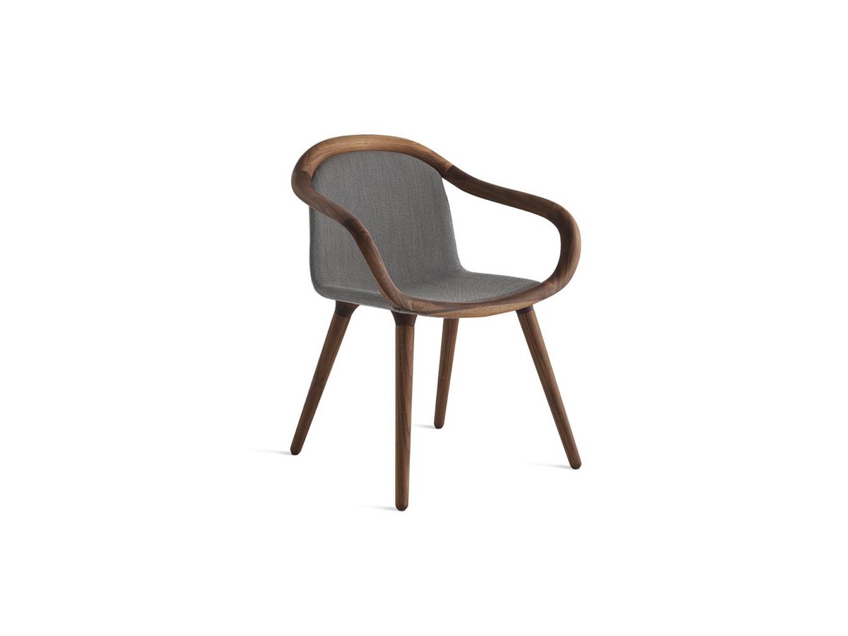 Studio Balutto Associati ha creado una silla de madera de nogal tapizada en piel o tela con reposabrazos para garantizar el máximo confort durante tus almuerzos con amigos. Ginevra tiene una estructura de nogal canaletto macizo, mientras que el asiento y el respaldo están tapizados y revestidos en tela, piel sintética o cuero. Lo que hace que Ginevra sea una silla de comedor tan atractiva es su estilo, que se sitúa entre el diseño moderno y el clásico atemporal. De hecho, las patas y los reposabrazos recuerdan la idea de un trono combinado con un asiento sencillo, pero fuerte y cómodo, con un estilo decididamente más moderno. La silla de comedor Ginevra se adapta a cualquier entorno, ya sea residencial o contract, demostrando una vez más su adaptabilidad incluso dentro de una oficina.