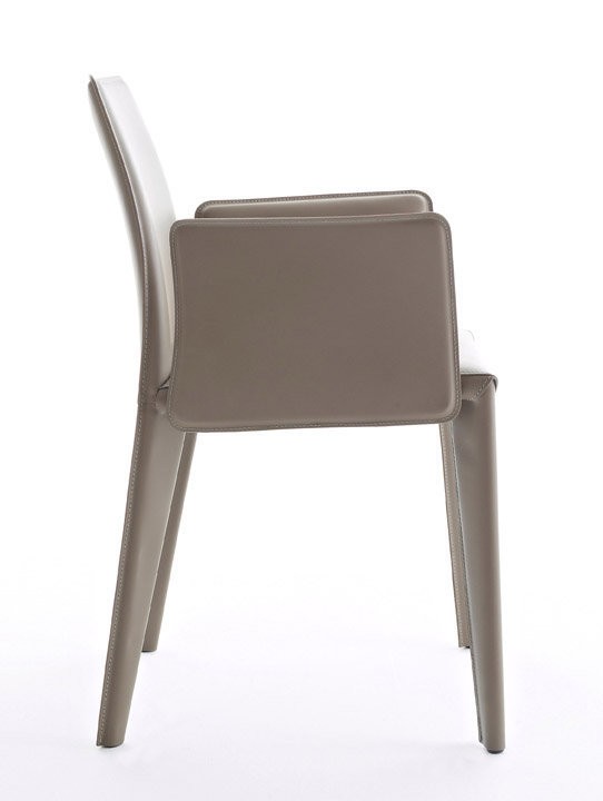 La silla Karlotta.p con reposabrazos de Colico con sus líneas minimalistas y sofisticadas es ideal para cualquier ambiente tanto moderno como clásico. También es perfecto para entornos contract refinados. Disponible en varios colores de piel.