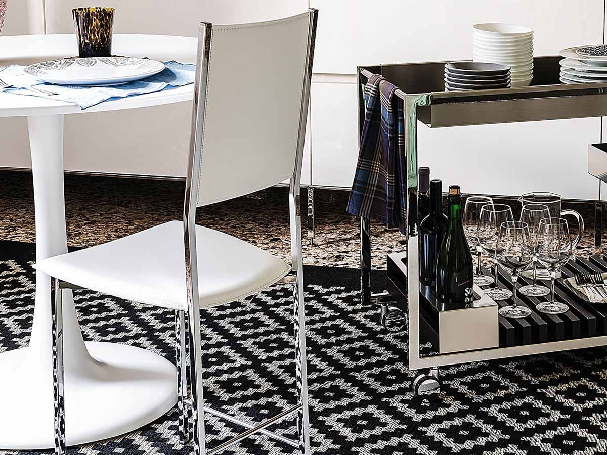 La silla Alessia , de diseño Cà Nova Design para Cattelan Italia, es un beauty particular por sus líneas modernas. La esbelta y sencilla estructura de acero se combina con asiento y respaldo de cuero, que le da un pequeño toque de elegancia. Perfect para la cocina o el comedor menos formal.