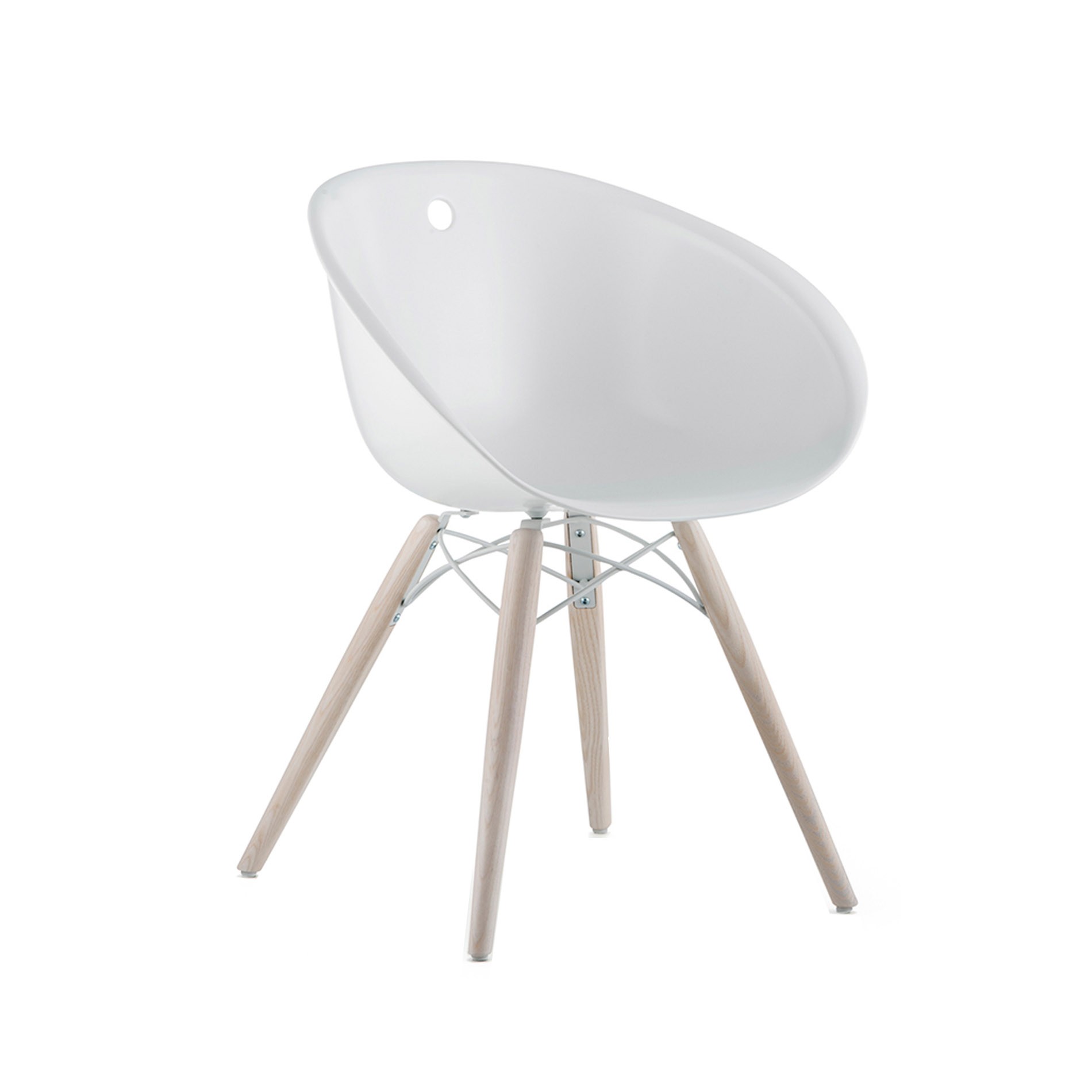 La silla Gliss Wood, diseñada por Claudio Dondoli y Marco Pocci para Pedrali, está dedicada a aquellos que quieren relajarse sin renunciar a la funcionalidad y la elegancia. Carcasa de tecnopolímero moldeada por inyección, las patas son de madera de fresno. La silla es muy resistente y cómoda. La madera de fresno puede ser blanqueada o teñida de negro, el tecnopolímero puede ser blanco o arena.