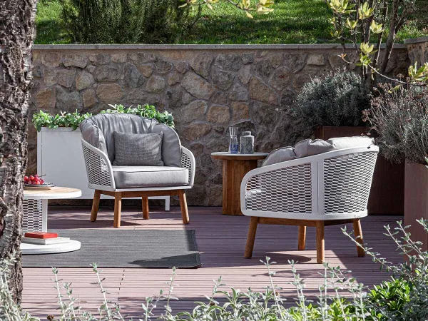 Cyrano es uno de los últimos sillones que han llegado a Atmosphera. Es un ejemplo clásico de cómo el confort y la durabilidad pueden coexistir en un mismo mueble. Gracias a los mullidos cojines de asiento y respaldo, el sillón Cyrano es cómodo y acogedor. Al mismo tiempo, la estructura de aluminio y madera le confiere robustez y durabilidad. Empieza a amueblar con estilo tus espacios exteriores, así como tus espacios contract como hoteles, bares, resorts y restaurantes.