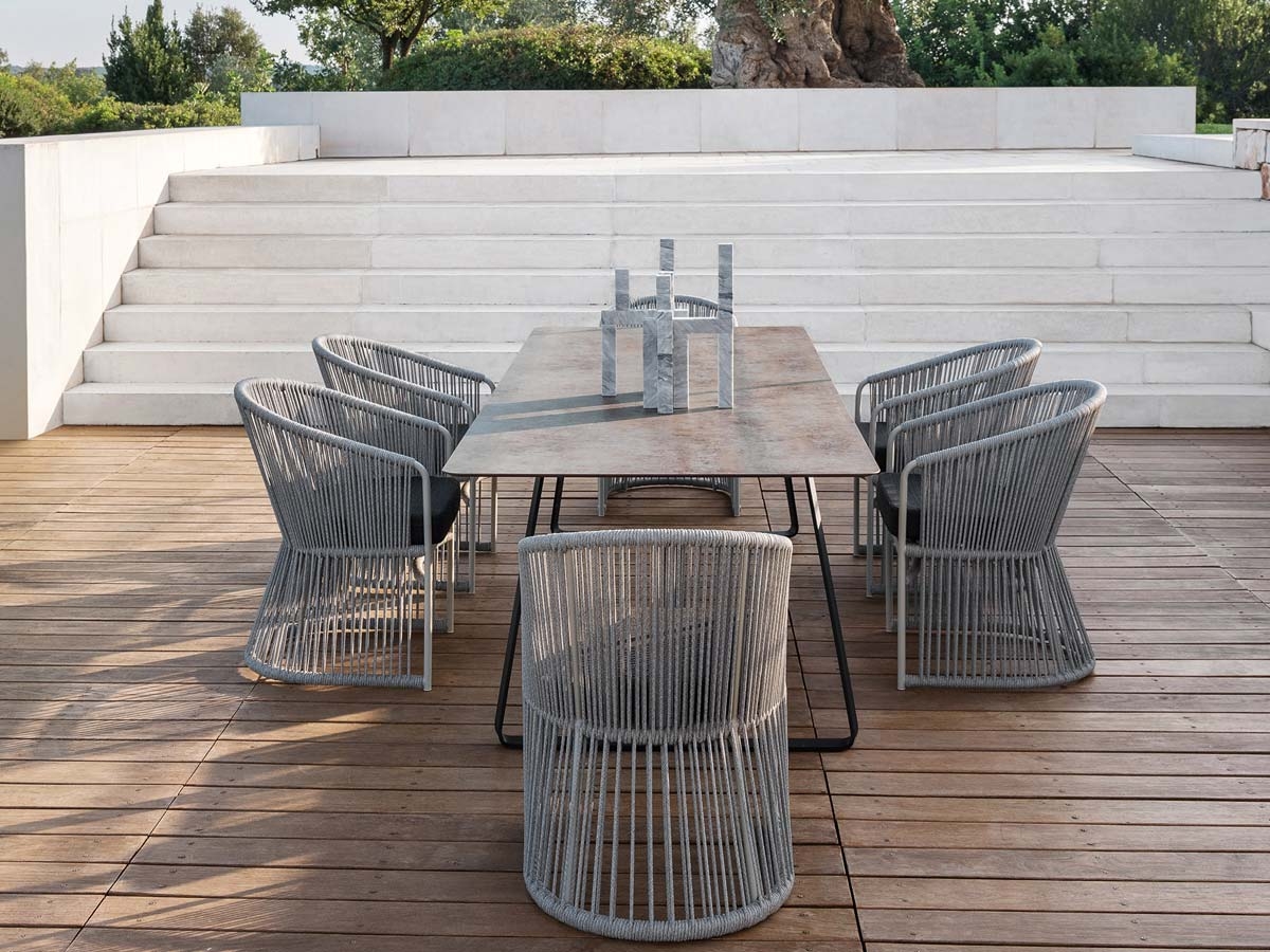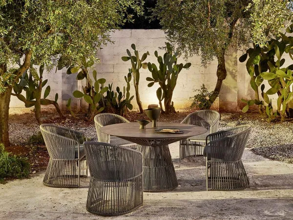 La butaca Tibidabo es tan única como creativa porque se parece a un reloj de arena y se caracteriza por un entremado de cuerdas de fibra sintética. Haz que tu jardín sea aún más atractivo con la mesa Tibidabo, la pareja perfecta para esta butaca, creando así una atmósfera de paz y tranquilidad.