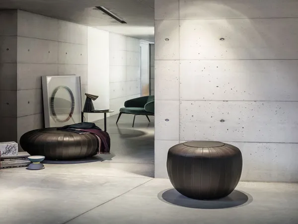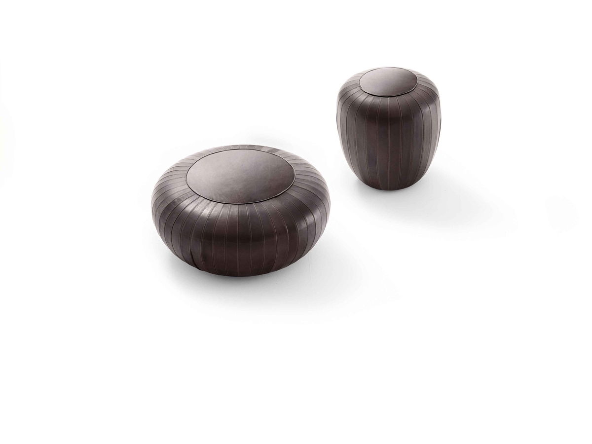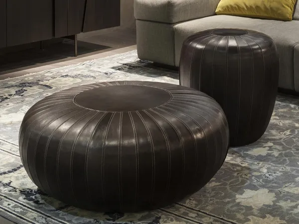 El puf Tod se caracteriza por su tapizado de piel con costuras visibles y por su versatilidad: Tod está disponible en dos versiones y con dos tipos de acabado de piel.
